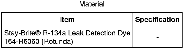 NOTE: Fluorescent refrigerant system dye is added to the refrigerant system at the factory to assist in refrigerant system leak diagnosis using a Rotunda-approved UV blacklight. It is not necessary to add additional dye to the refrigerant system before diagnosing leaks, even if a significant amount of refrigerant has been removed from the system. Replacement suction accumulators and receiver/driers are shipped with a fluorescent dye "wafer" included in the desiccant bag which will dissolve after approximately 30 minutes of continued A/C operation. It is not necessary to add dye after flushing or filtering the refrigerant system because a new suction accumulator or receiver/drier is installed as part of the flushing or filtering procedure. Additional refrigerant system dye should only be added if more than 50% of the refrigerant system lubricant capacity has been lost due to a fitting separation, hose rupture or other damage.