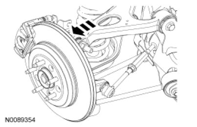 NOTE: To allow for rear camber adjustment, the upper arm is slotted at the upper arm-to-wheel knuckle joint. Rear camber is adjusted from the factory with the wheel knuckle pushed inboard for maximum negative camber. If the camber is more negative than specification, the top of the wheel knuckle should be positioned outboard to adjust the rear camber to the positive position.