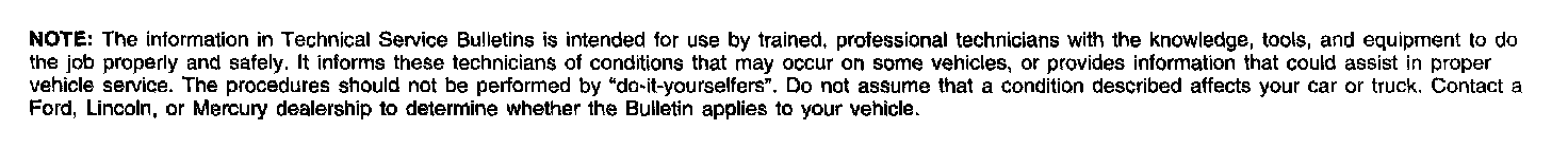 IMPORTANT: Warranty coverage limits/policies are not altered by a TSB. Warranty coverage limits are determined by the identified causal part.