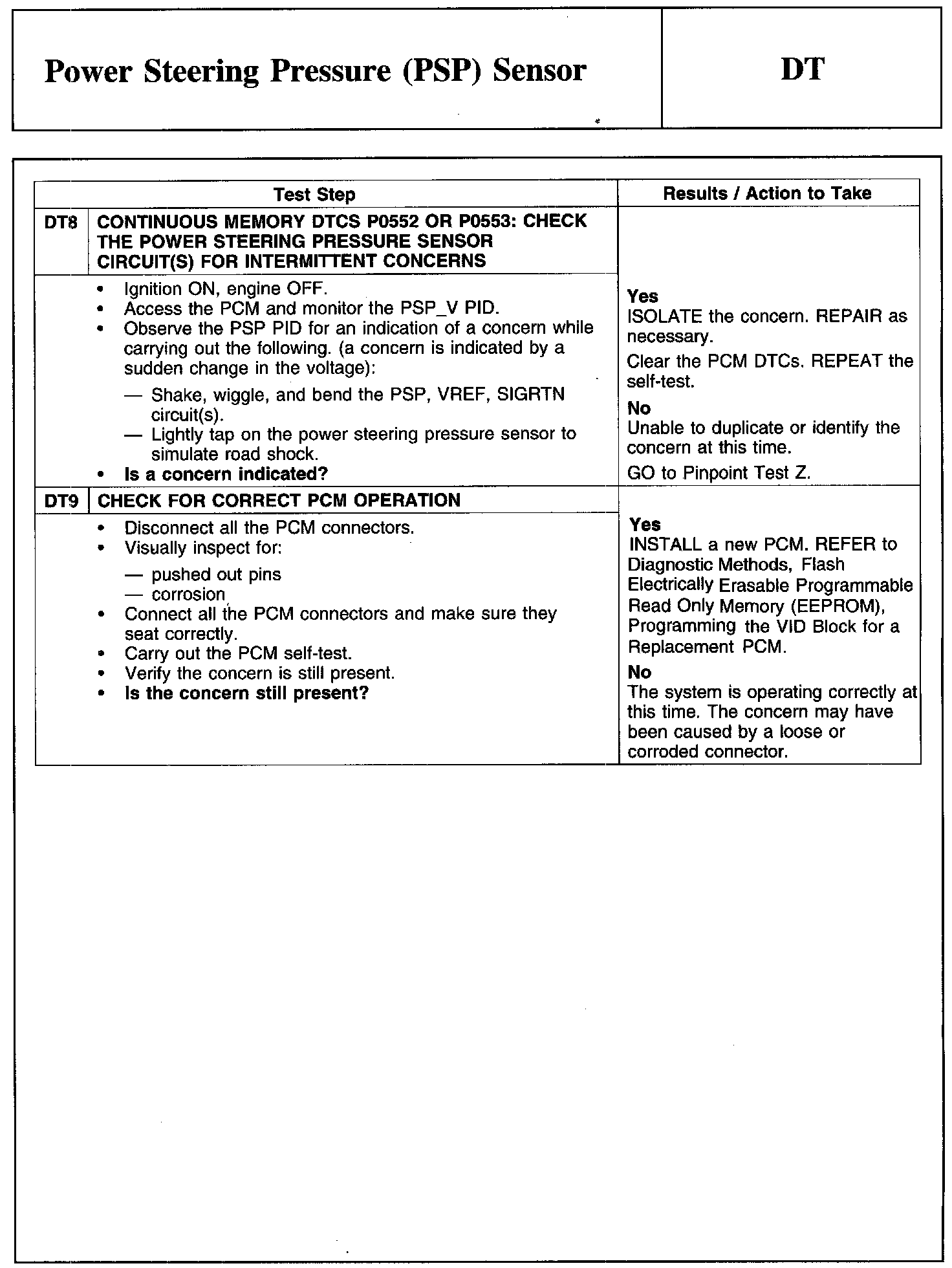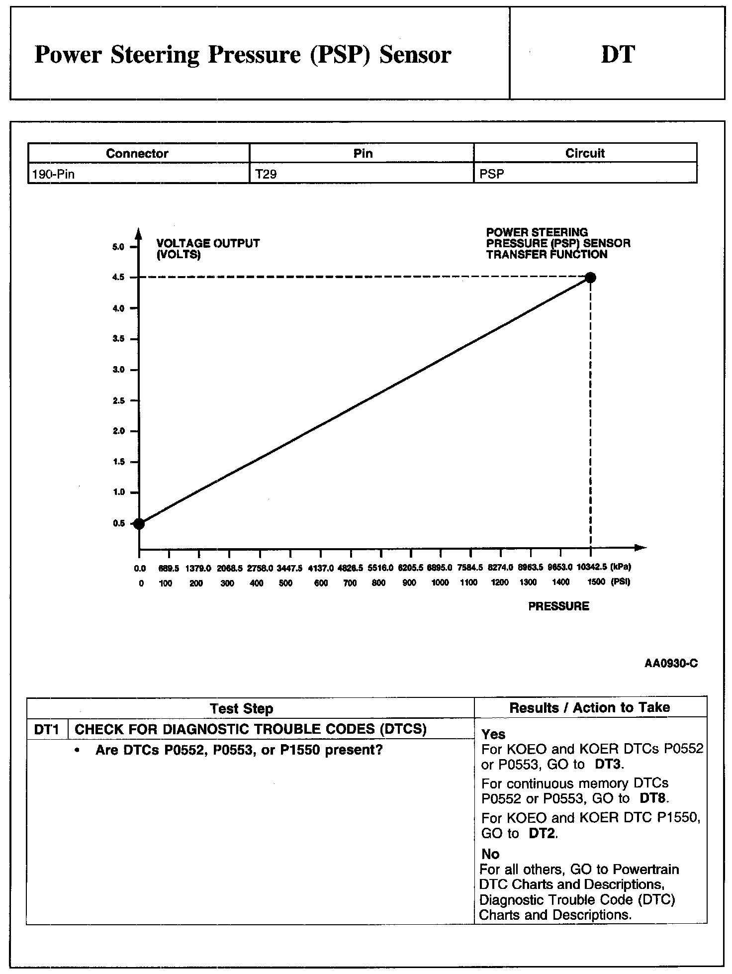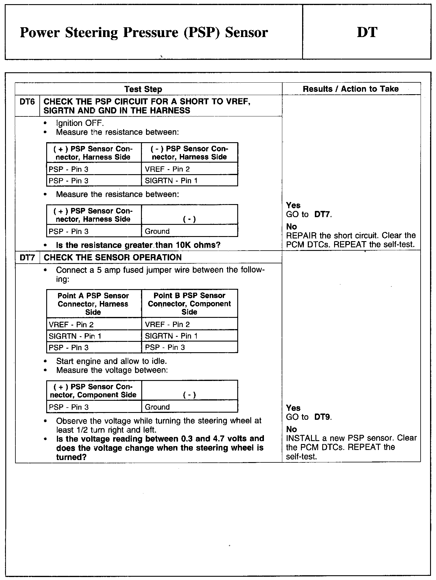 PINPOINT TEST DT: POWER STEERING PRESSURE (PSP) SENSOR