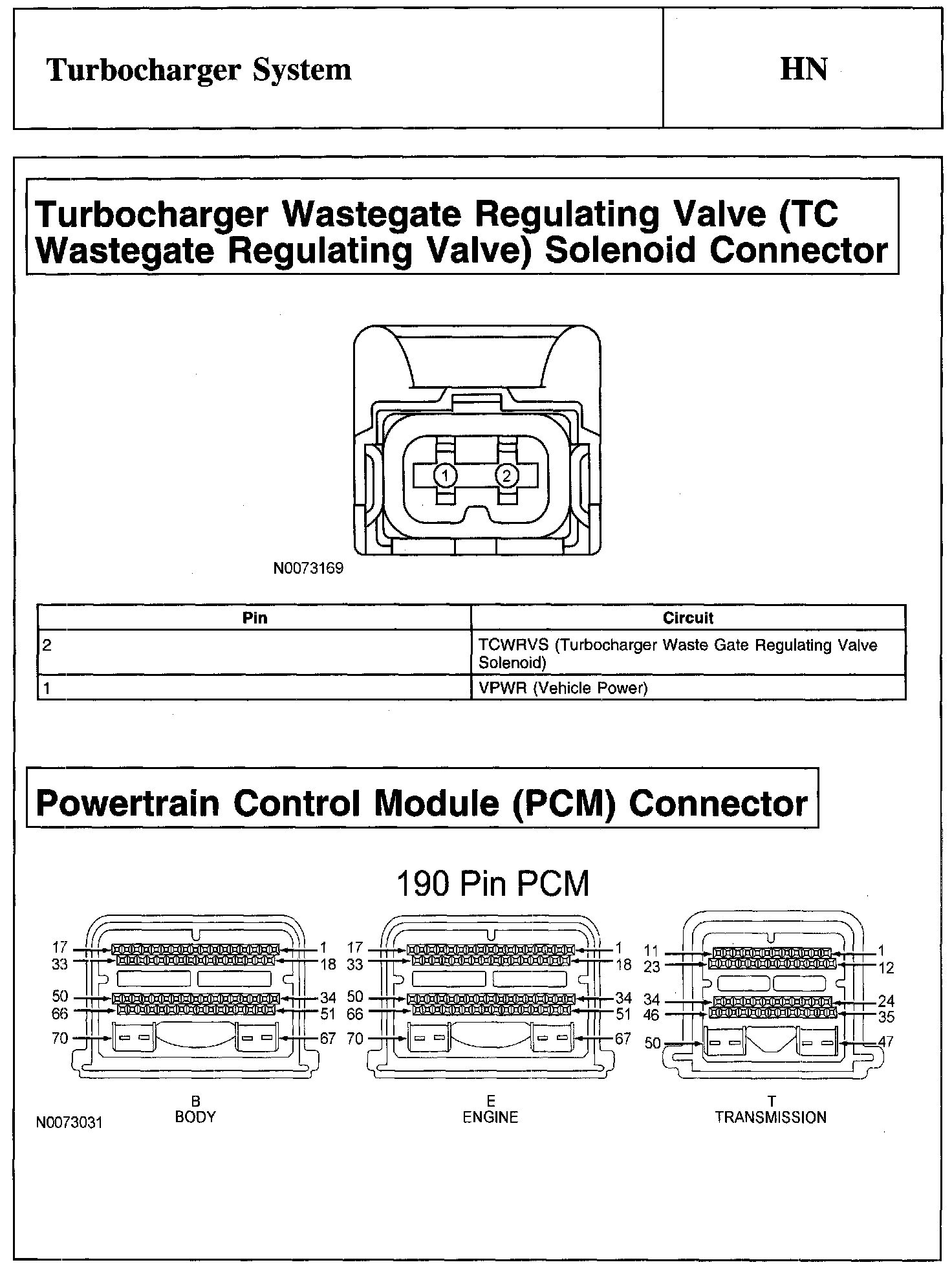 Turbocharger Wastegate Regulating Valve (TC Wastegate Regulating Valve) Solenoid Connector And Powertrain Control Module (PCM) Connector: