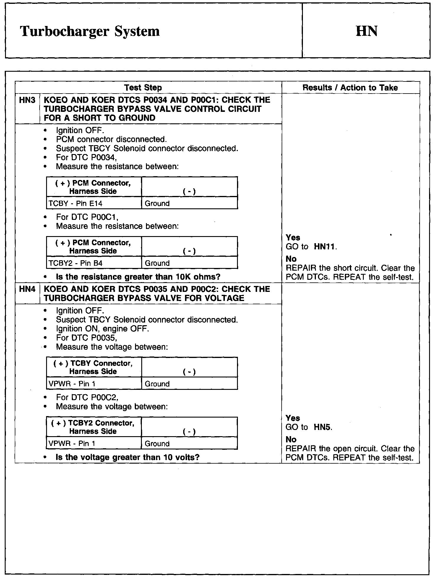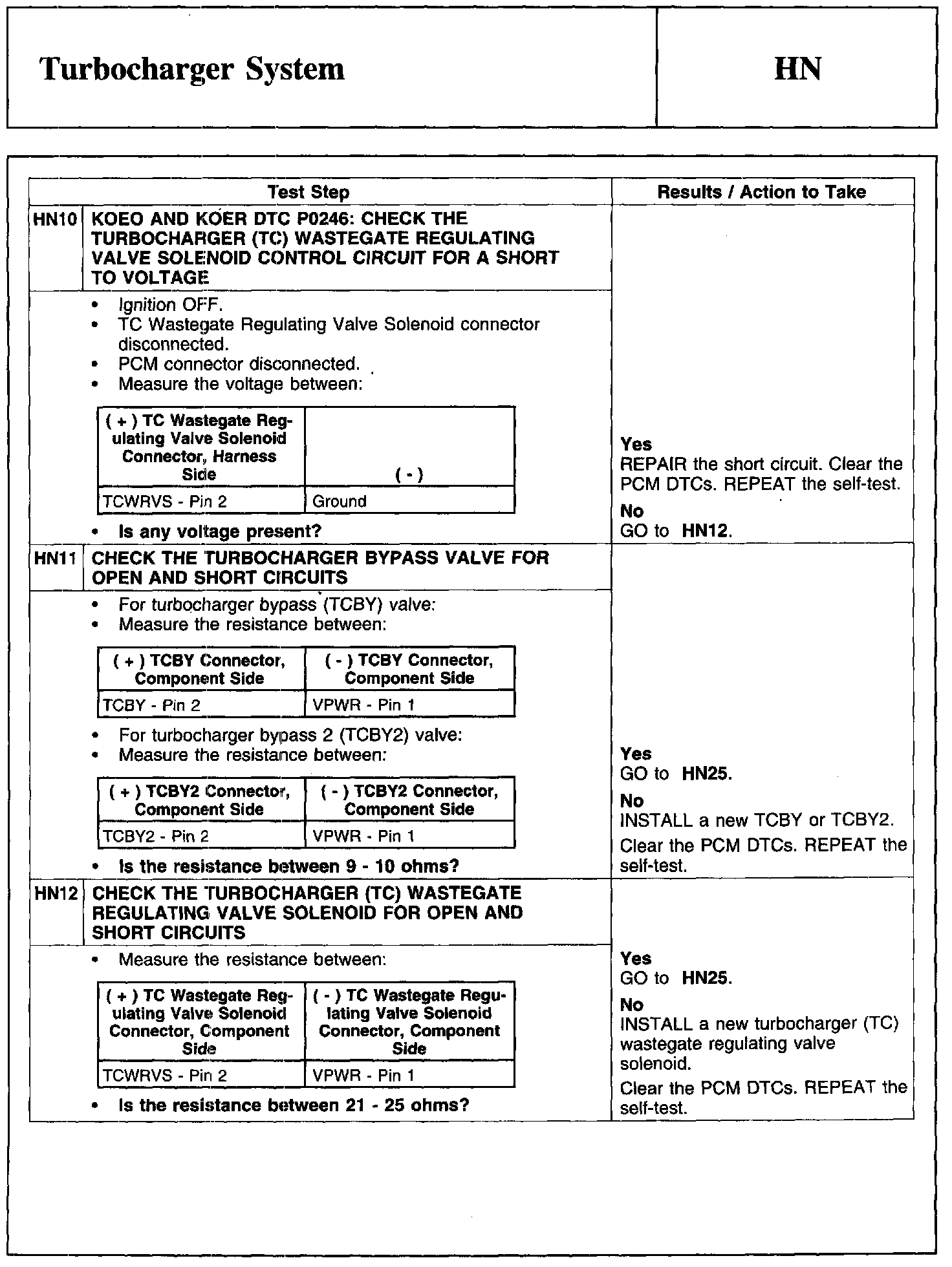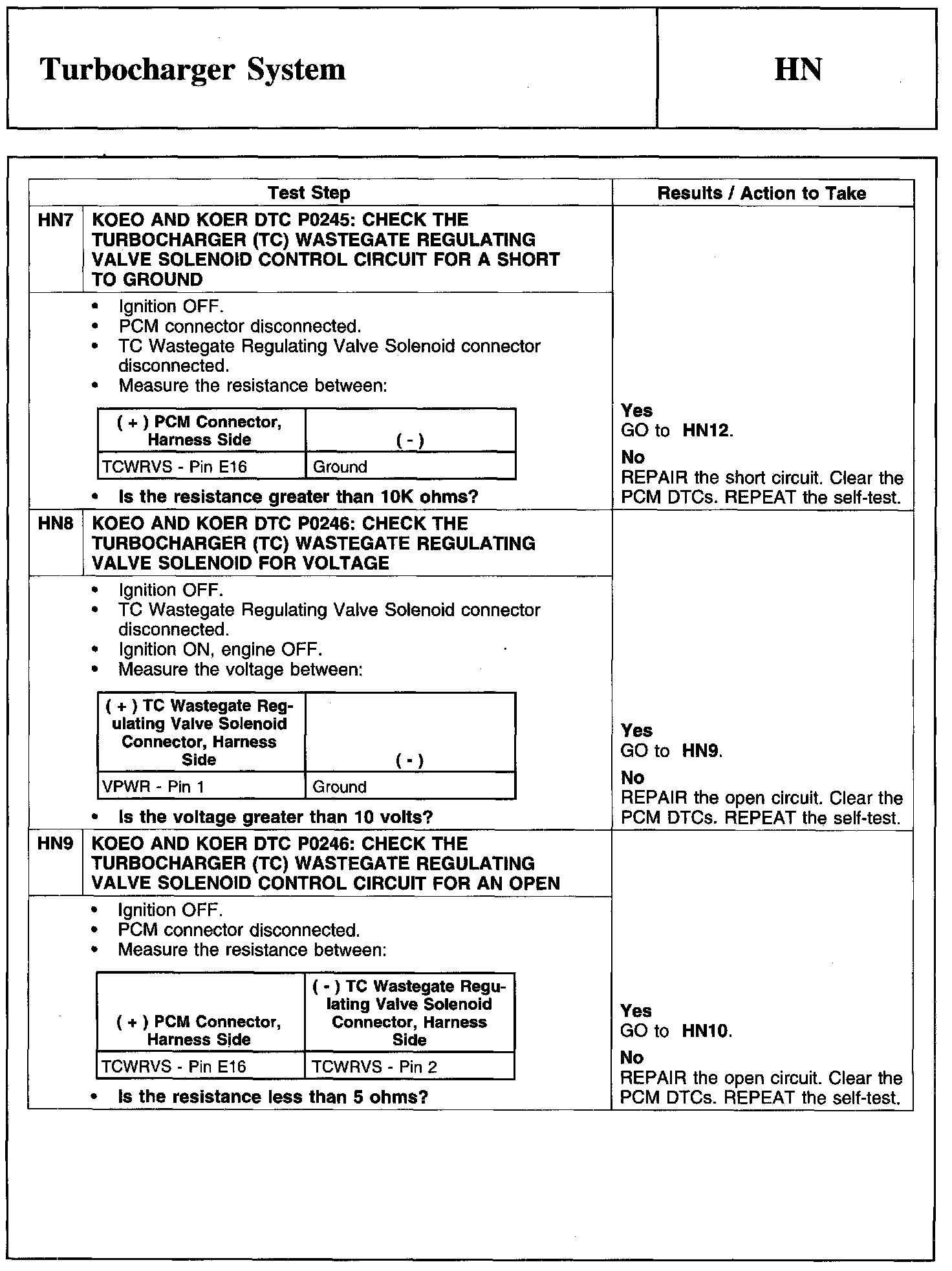 Home >> Ford >> 2010 >> Taurus AWD V6-3.5L >> Repair and Diagnosis >> Powertrain Management >> Computers and Control Systems >> Testing and Inspection >> Pinpoint Tests >> Test HN: Turbocharger System