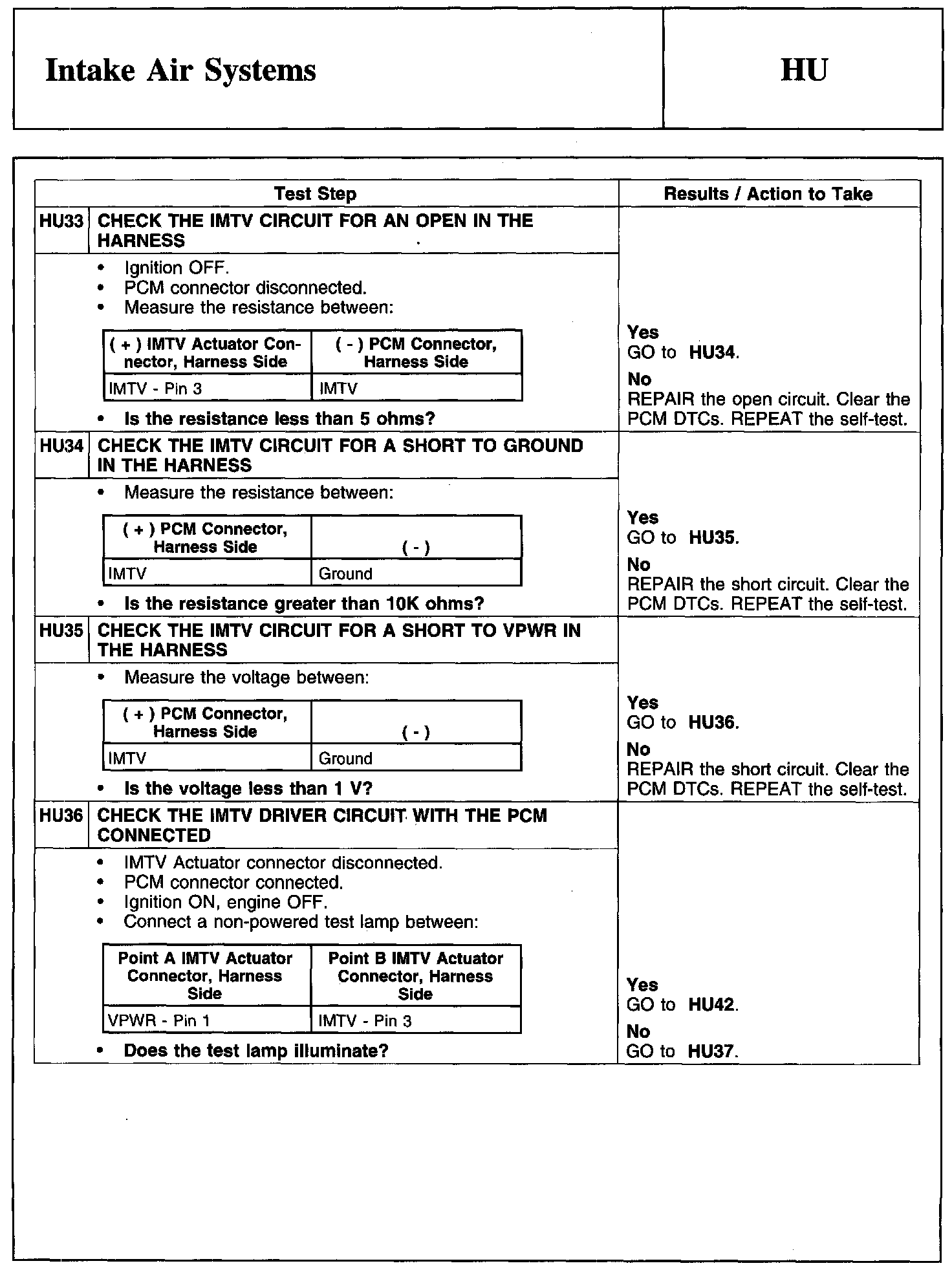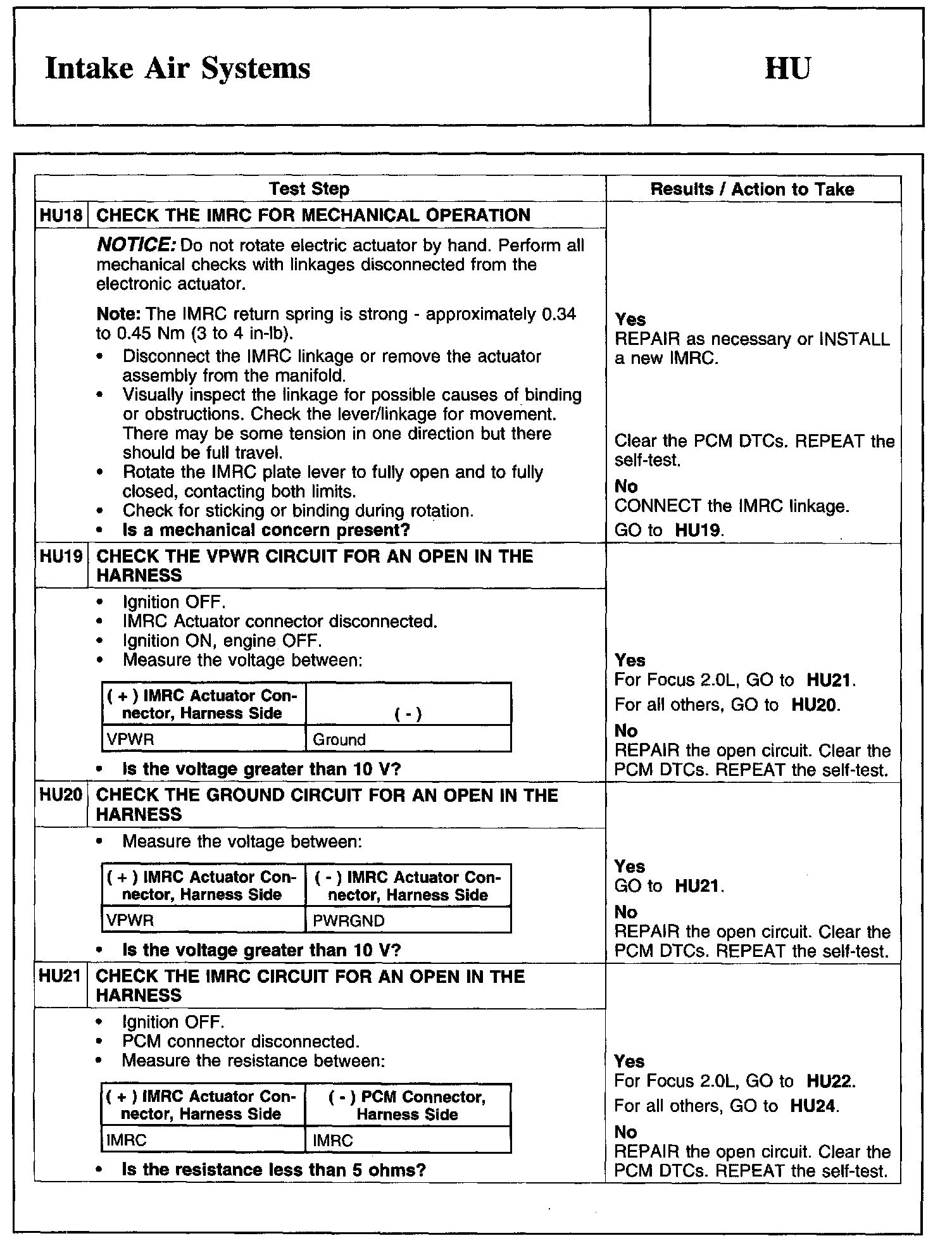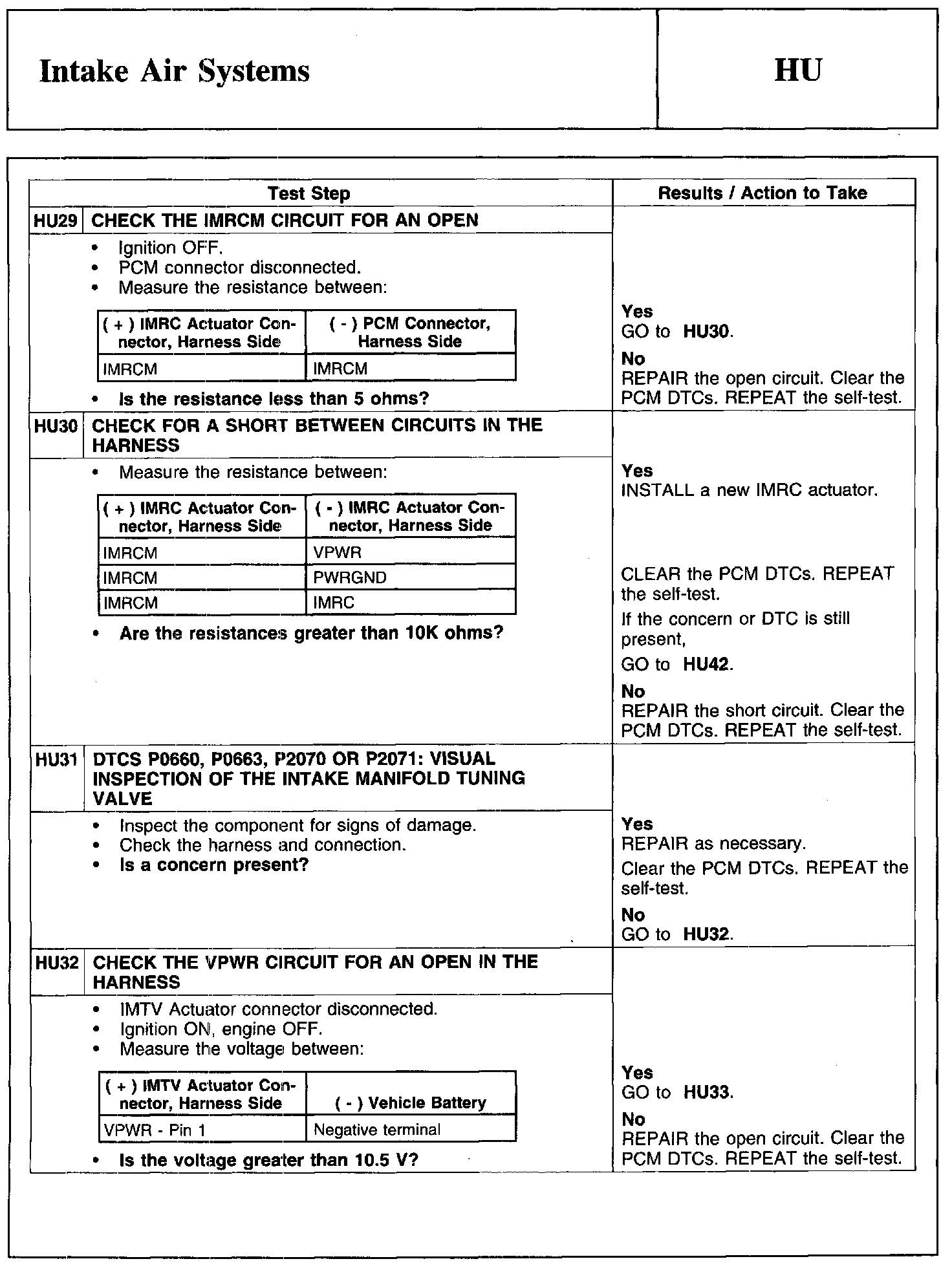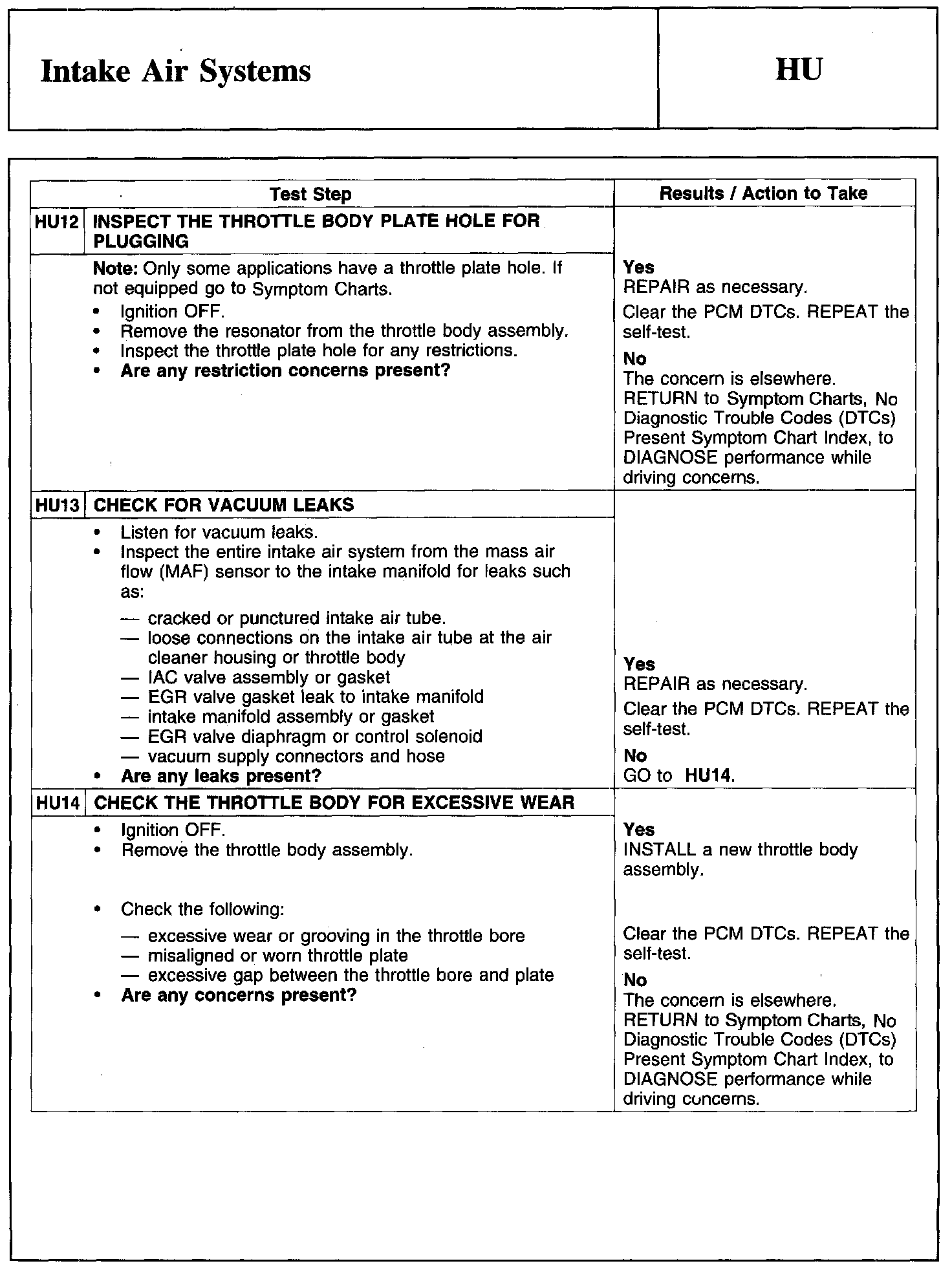 Home >> Ford >> 2010 >> Taurus AWD V6-3.5L >> Repair and Diagnosis >> Powertrain Management >> Computers and Control Systems >> Testing and Inspection >> Pinpoint Tests >> Test HU: Intake Air Systems