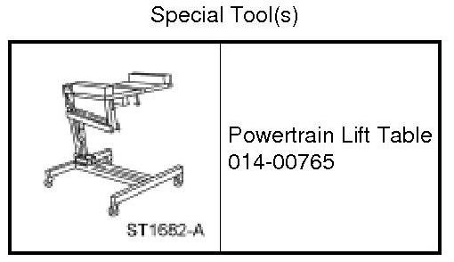 16. NOTICE: When positioning the lifting table, be sure to support the rear subframe on the subframe rails. Do not lift on the rear differential or rear control arms, damage may occur.