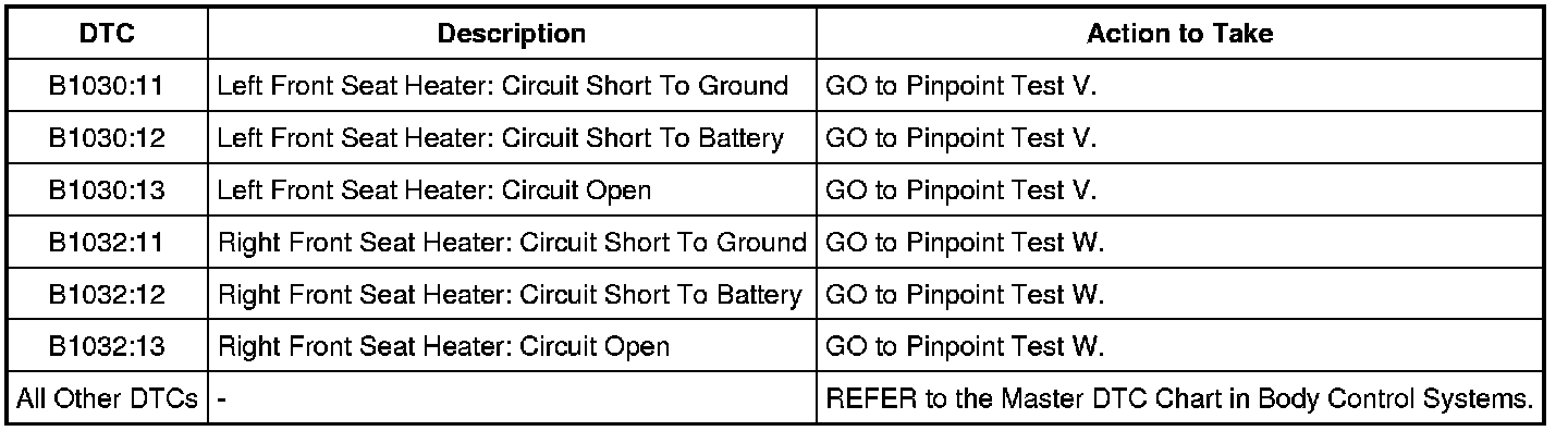 NOTE: This module utilizes a 5-character DTC followed by a 2-character failure type code. The failure type code provides information about specific fault conditions such as opens or shorts to ground. Continuous Memory Diagnostic Trouble Codes (CMDTCs) have an additional 2-character DTC status code suffix to assist in determining DTC history.