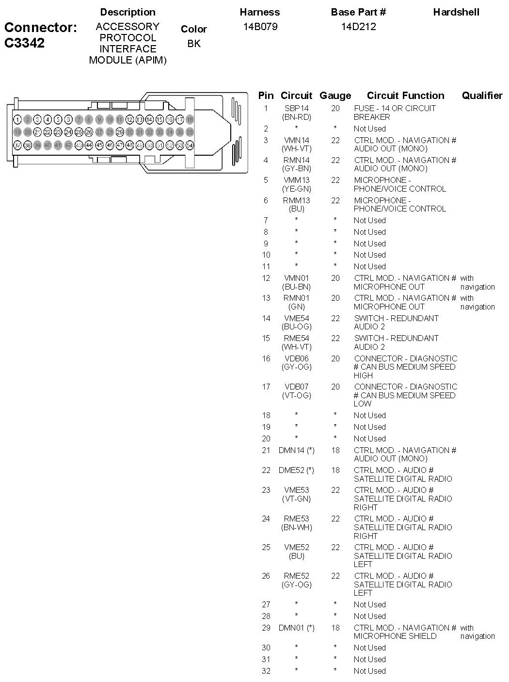 Home >> Ford >> 2010 >> Taurus FWD V6-3.5L >> Repair and Diagnosis >> Diagrams >> Connector Views >> Communications Control Module >> Accessory Protocol Interface Module (APIM)