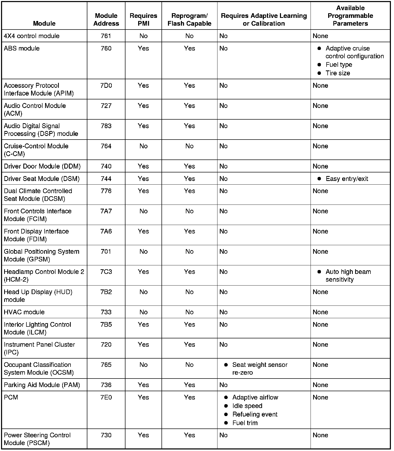 Home >> Ford >> 2010 >> Taurus FWD V6-3.5L >> Repair and Diagnosis >> Powertrain Management >> Computers and Control Systems >> Information Bus >> Testing and Inspection >> Initial Inspection and Diagnostic Overview >> Module Configuration >> Principles of Operation