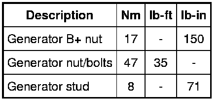 Home >> Ford >> 2010 >> Taurus FWD V6-3.5L >> Repair and Diagnosis >> Specifications >> Mechanical Specifications >> Charging System >> System Specifications >> Torque Specifications