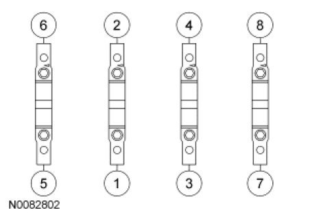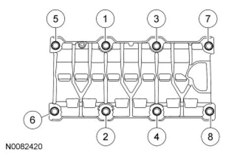 Stage 1: Tighten fasteners 1 through 8 to 60 Nm (44 lb-ft).