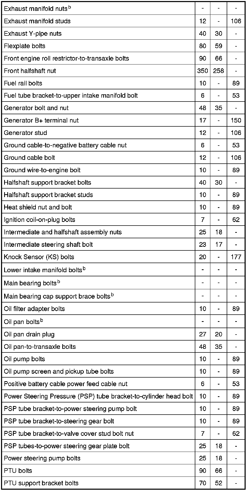 Torque Specifications