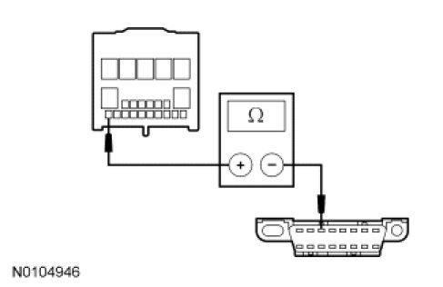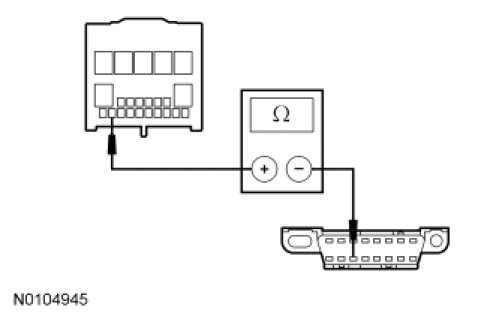 - Measure the resistance between the GEM C201b-22, circuit 5-EC14 (BU/BK), harness side and the DLC C251-11, circuit 5-EC1 (BU/RD)/5-EC13 (BU/WH)/5-EC14 (BU/BK), harness side.