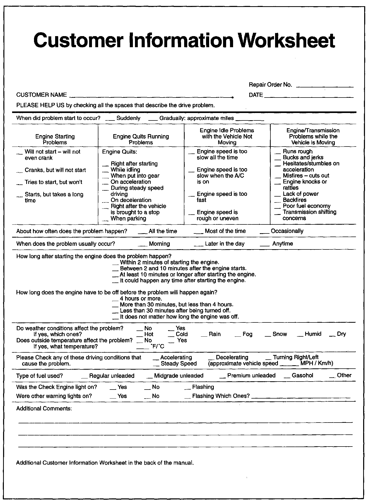 Customer Information Worksheet: