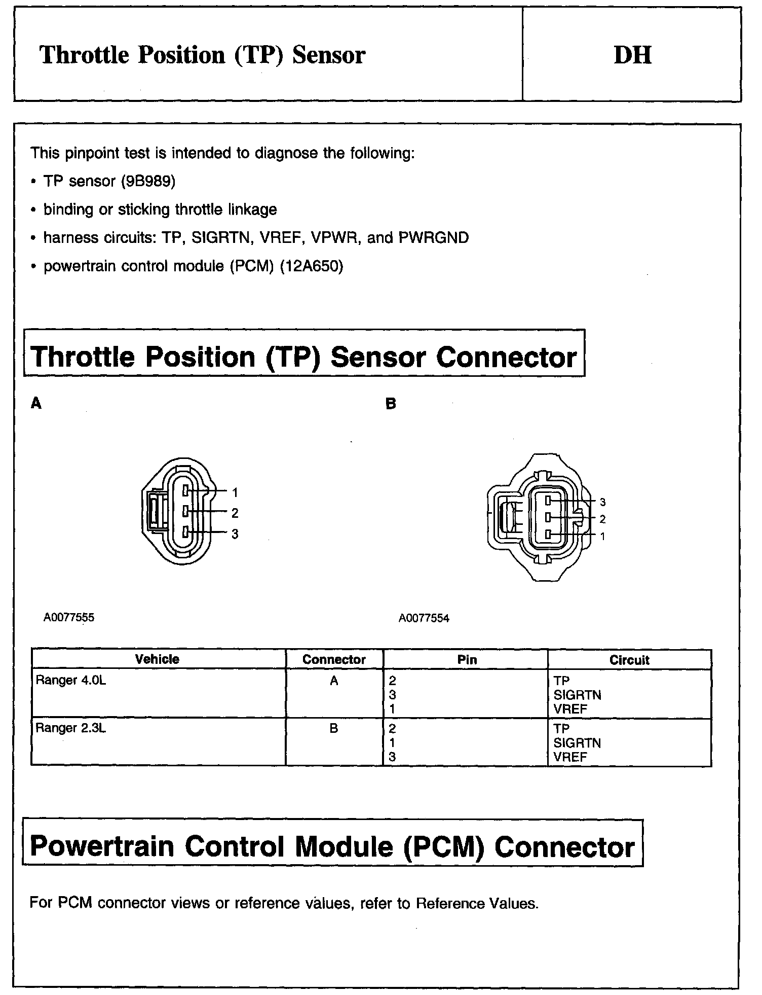 PINPOINT TEST DH: THROTTLE POSITION (TP) SENSOR