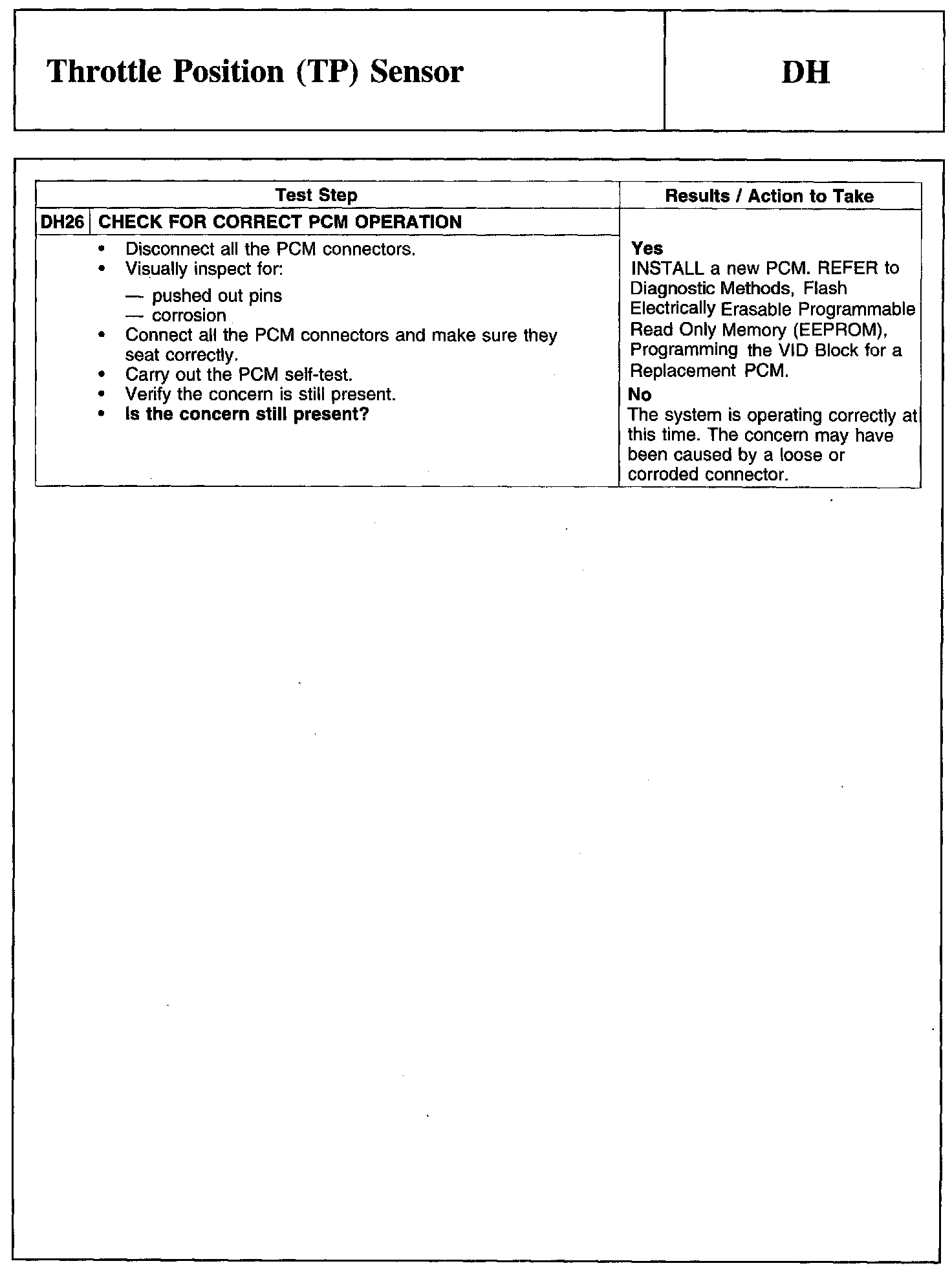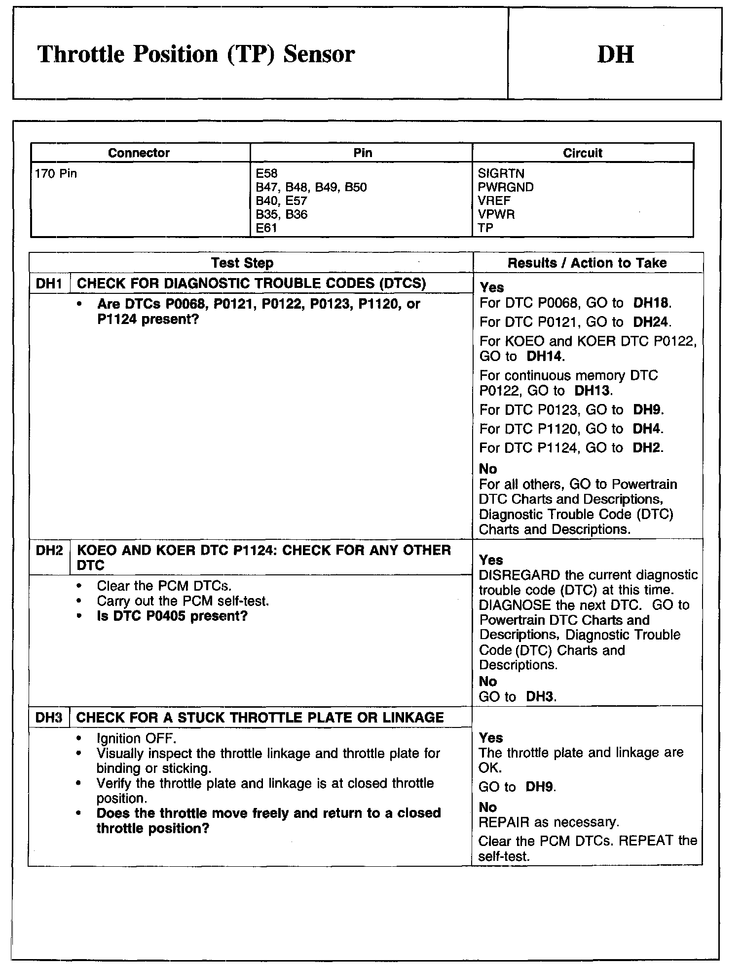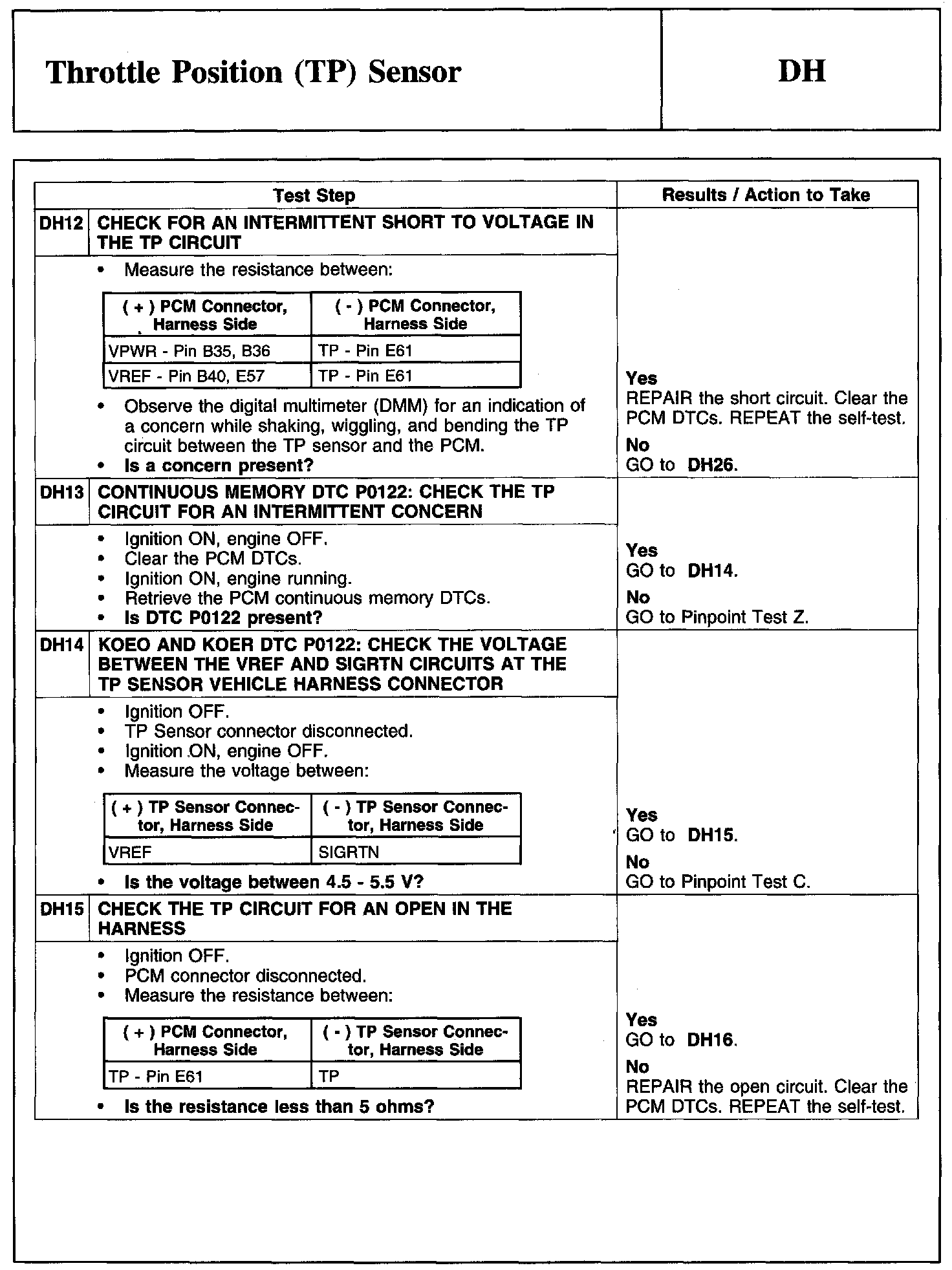 Test DH: Throttle Position (TP) Sensor