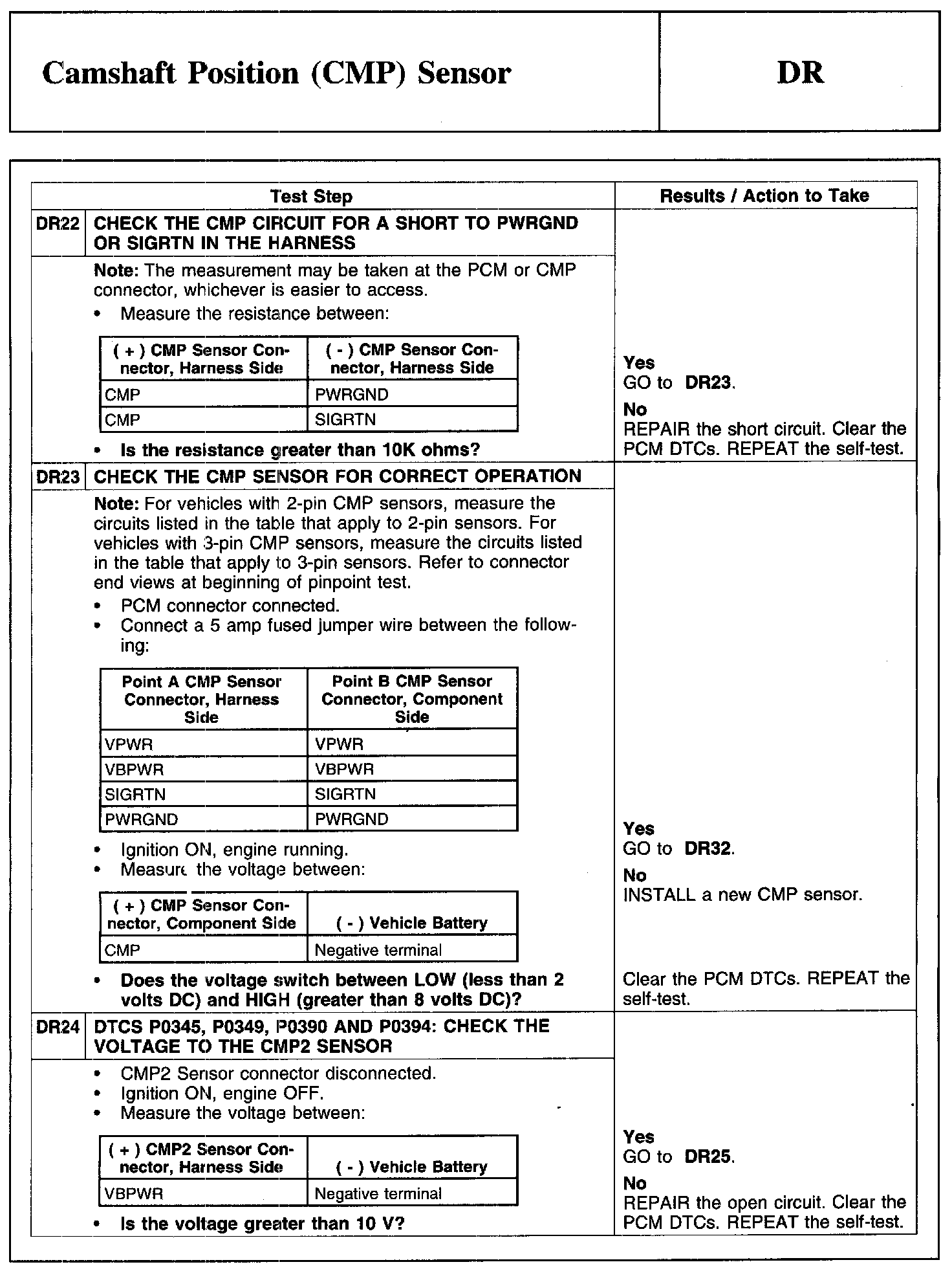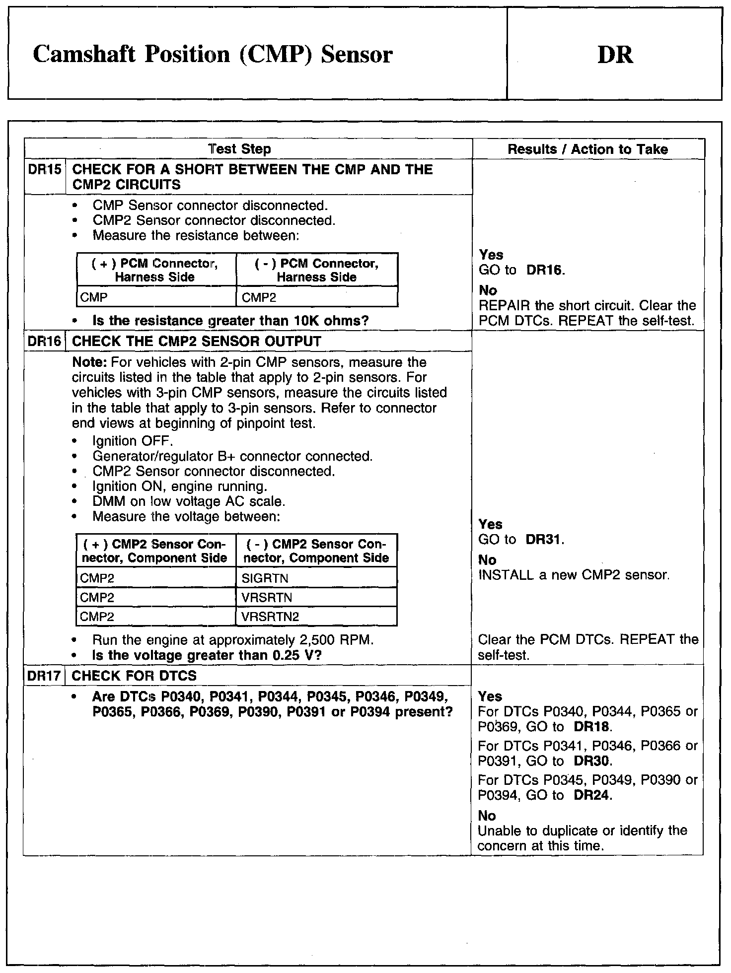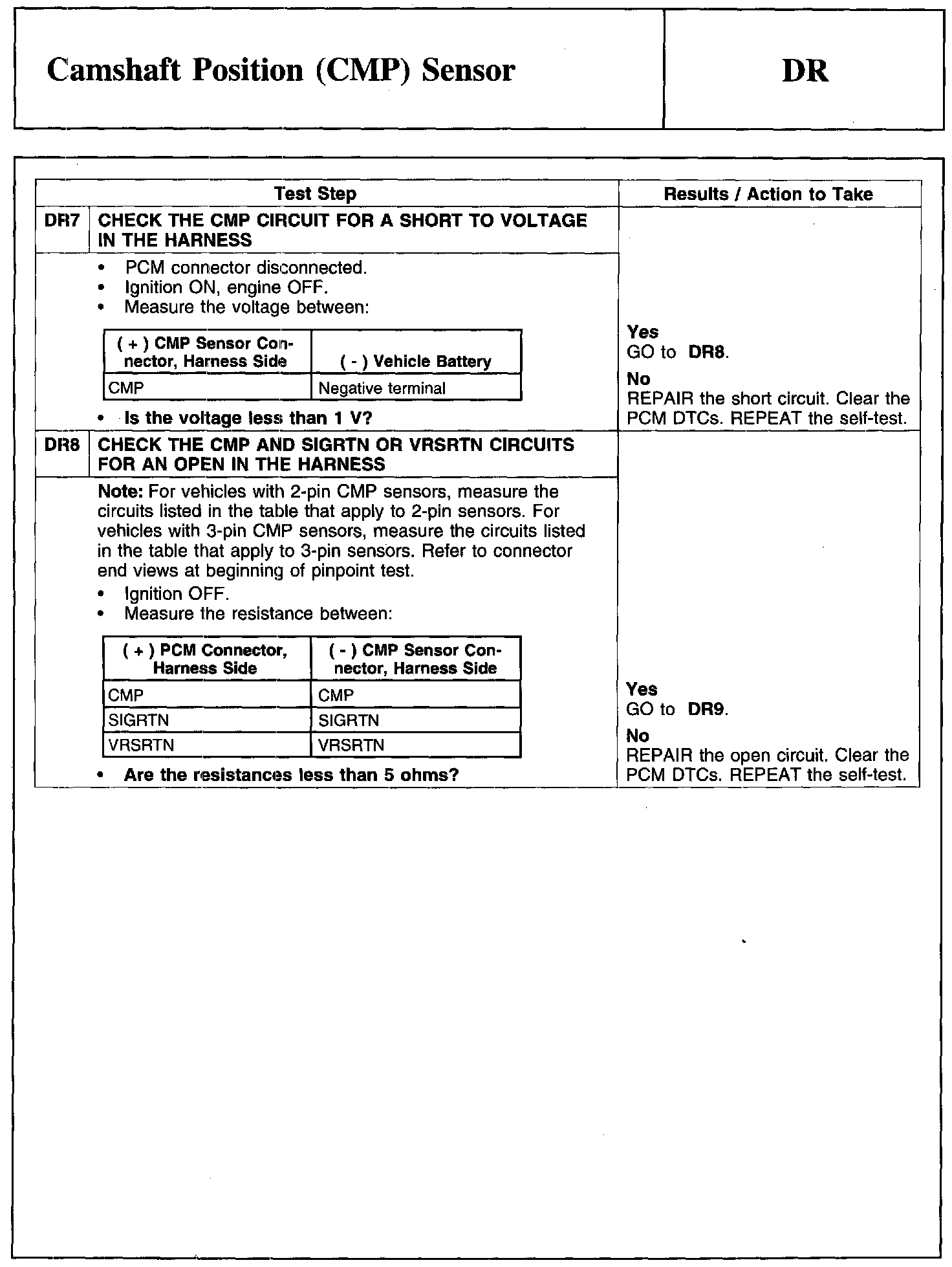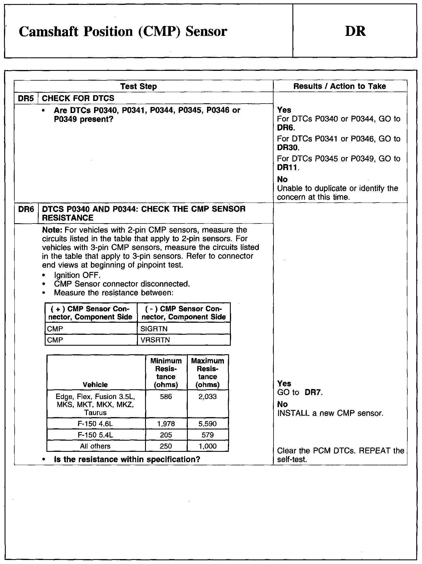 Test DR: Camshaft Position (CMP) Sensor
