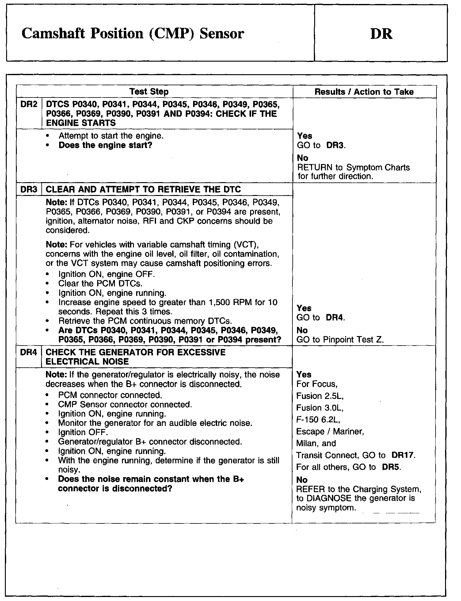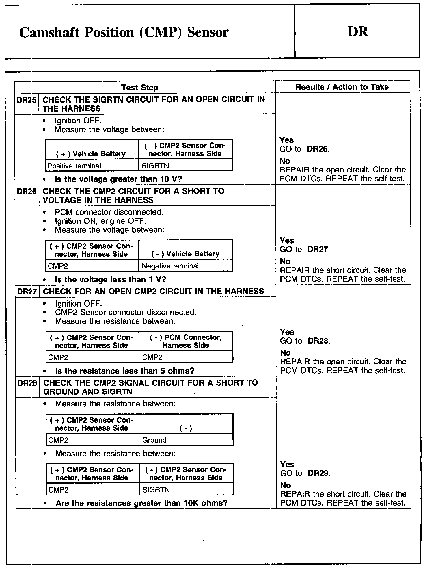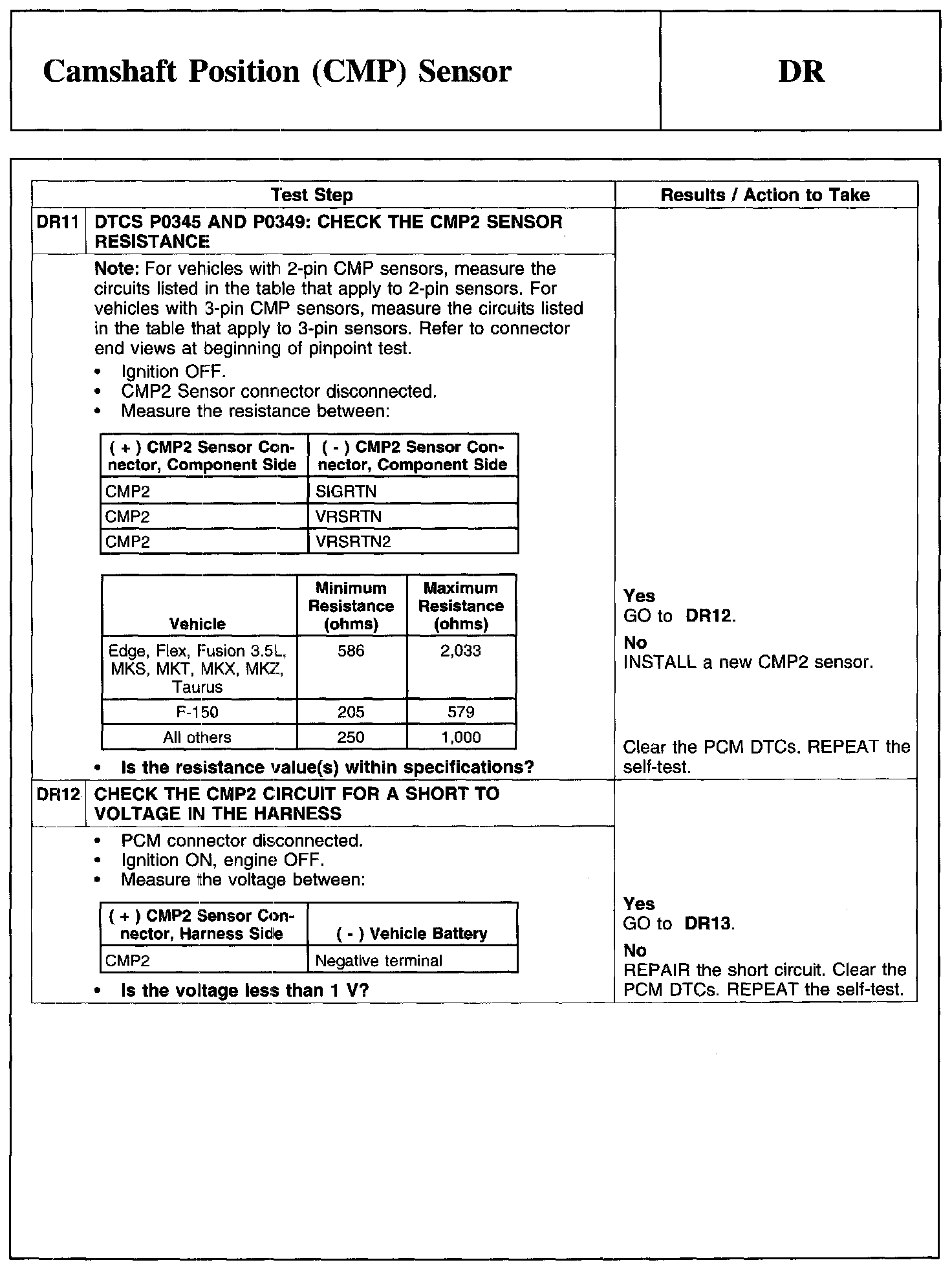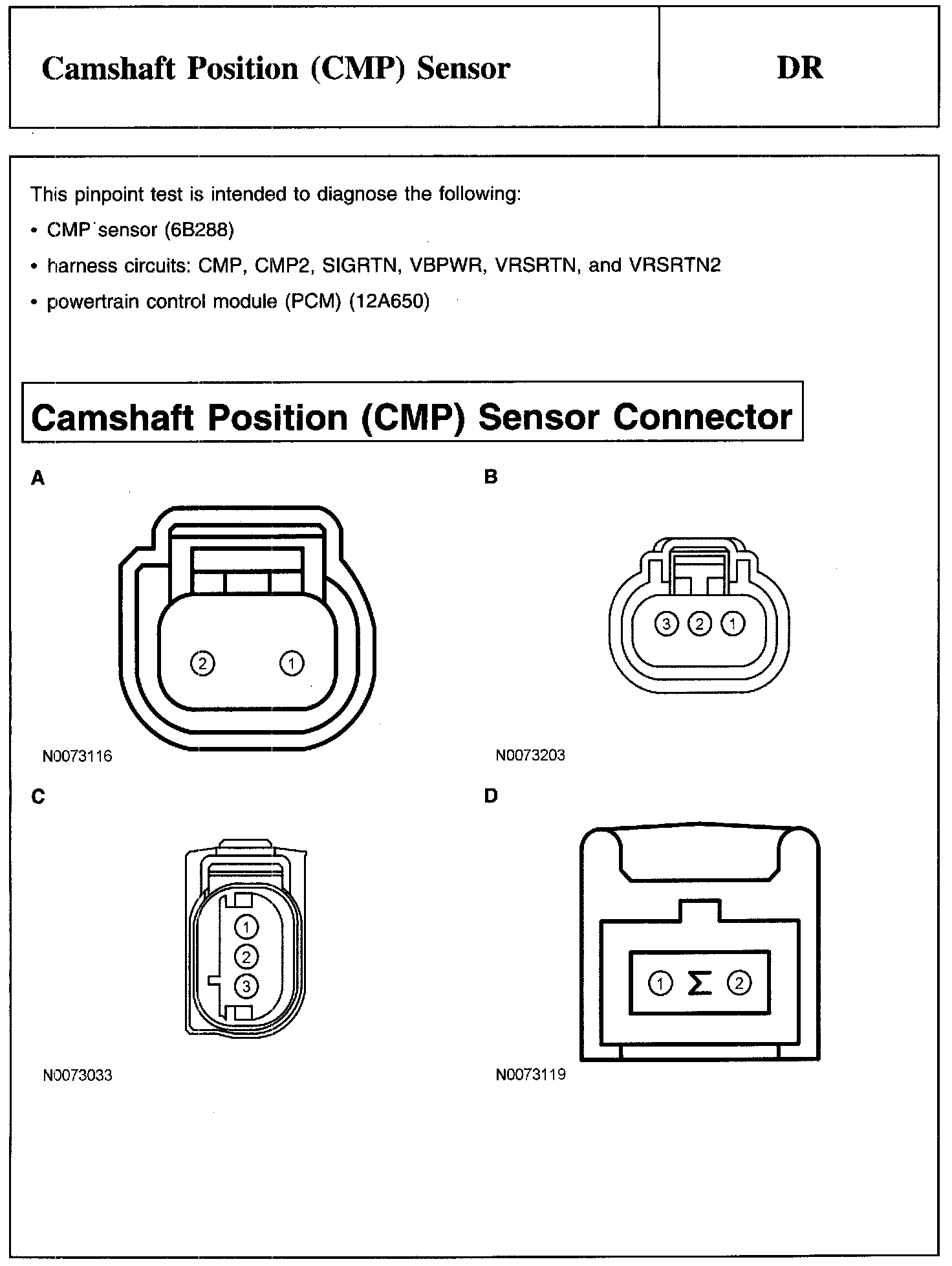 Test DR: Camshaft Position (CMP) Sensor