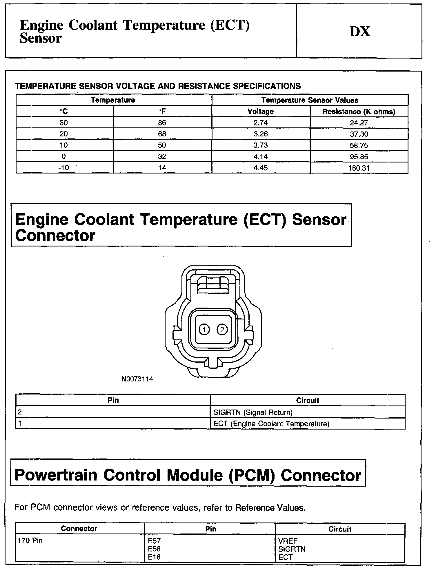 Test DX: Engine Coolant Temperature (ECT) Sensor