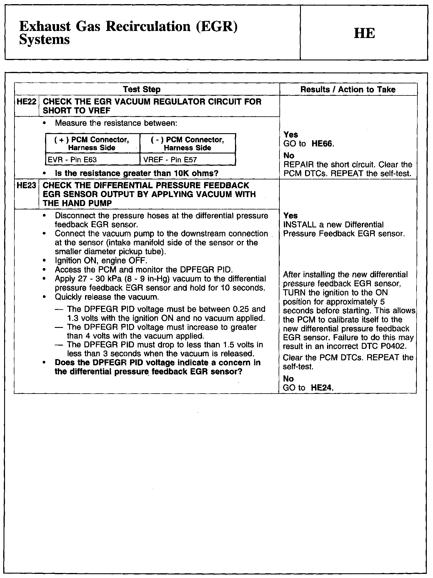 Test HE: Exhaust Gas Recirculation (EGR) Systems