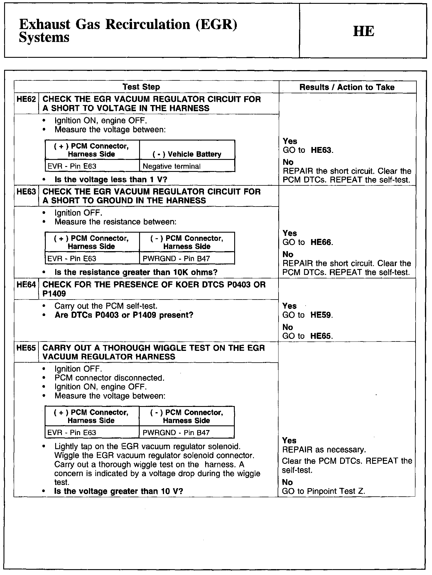 Home >> Ford >> 2010 >> Transit Connect L4-2.0L >> Repair and Diagnosis >> Powertrain Management >> Computers and Control Systems >> Testing and Inspection >> Pinpoint Tests >> Test HE: Exhaust Gas Recirculation (EGR) Systems