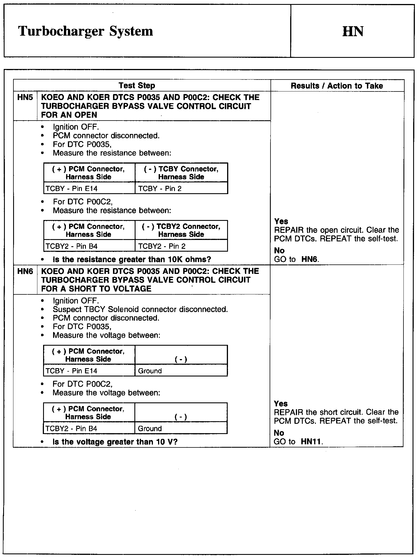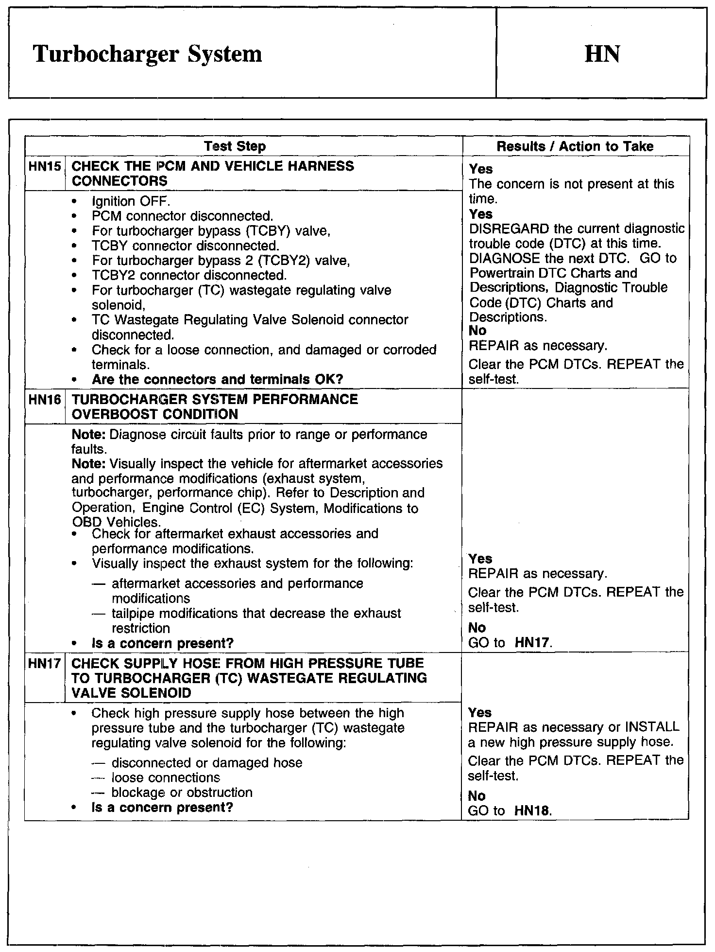 Home >> Ford >> 2010 >> Transit Connect L4-2.0L >> Repair and Diagnosis >> Powertrain Management >> Computers and Control Systems >> Testing and Inspection >> Pinpoint Tests >> Test HN: Turbocharger System
