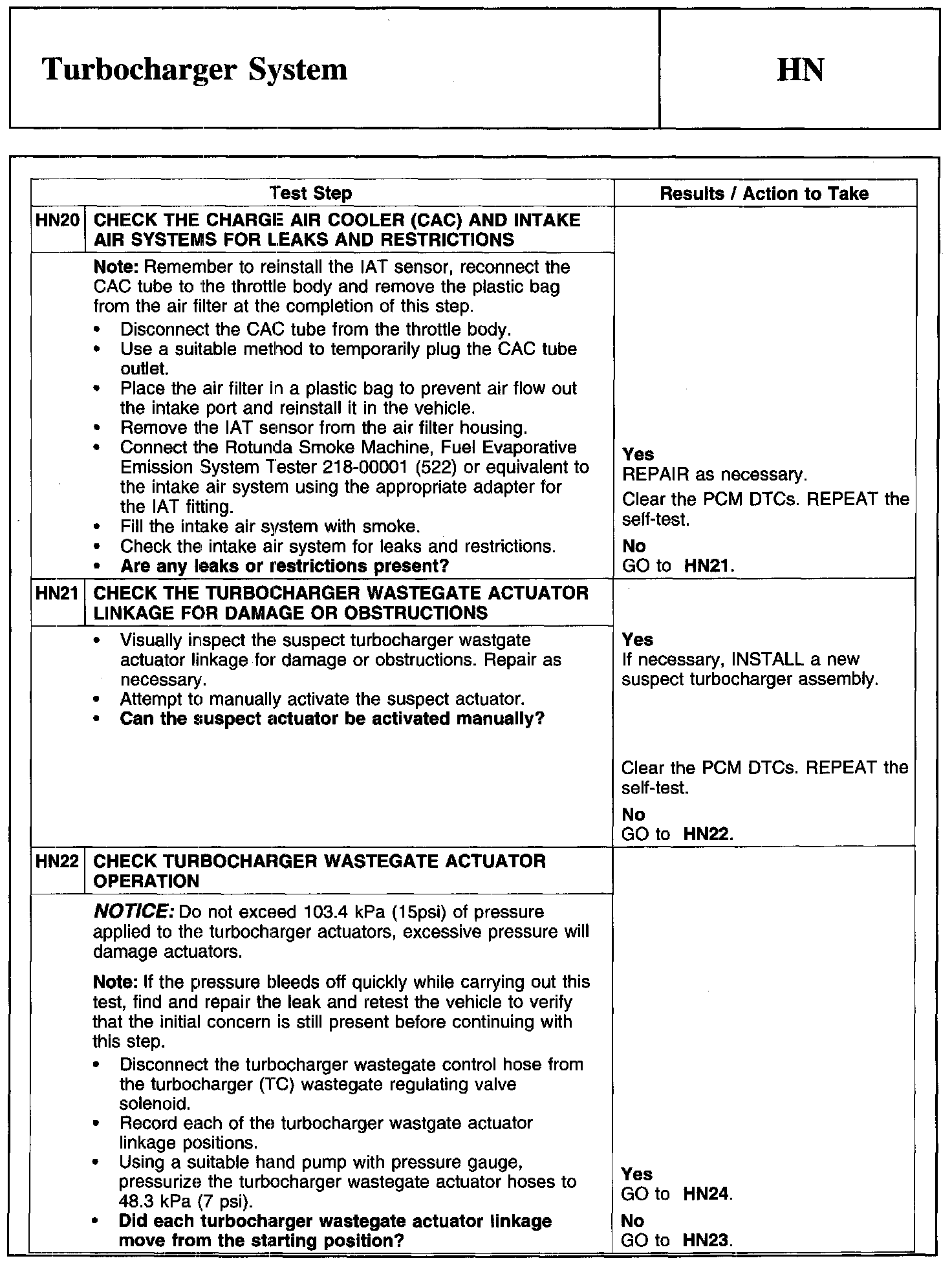 PINPOINT TEST HN: TURBOCHARGER SYSTEM
