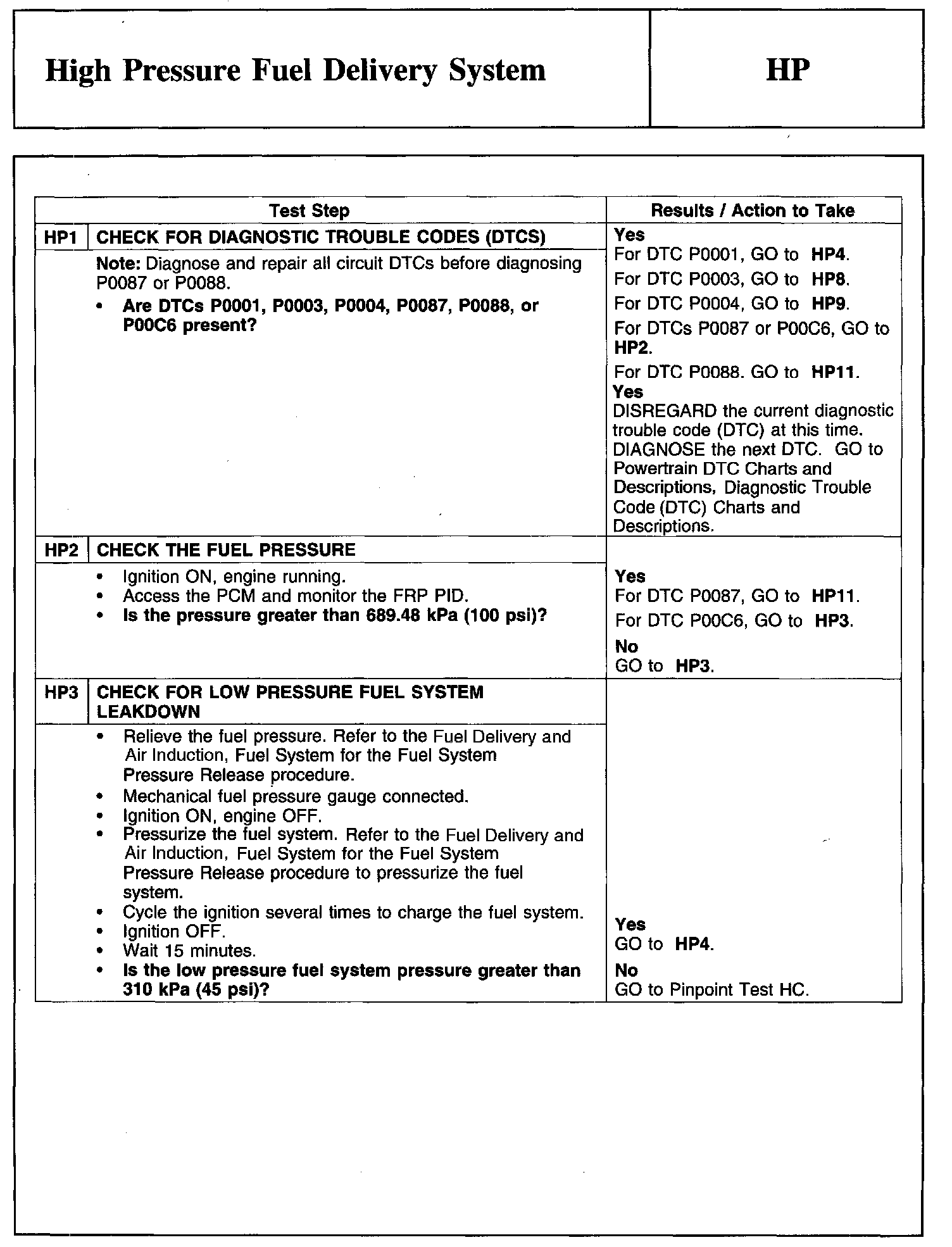 PINPOINT TEST HP: HIGH PRESSURE FUEL DELIVERY SYSTEM