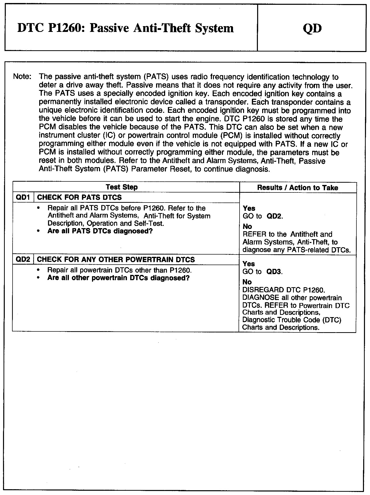 PINPOINT TEST QD: DTC P1260: PASSIVE ANTI-THEFT SYSTEM