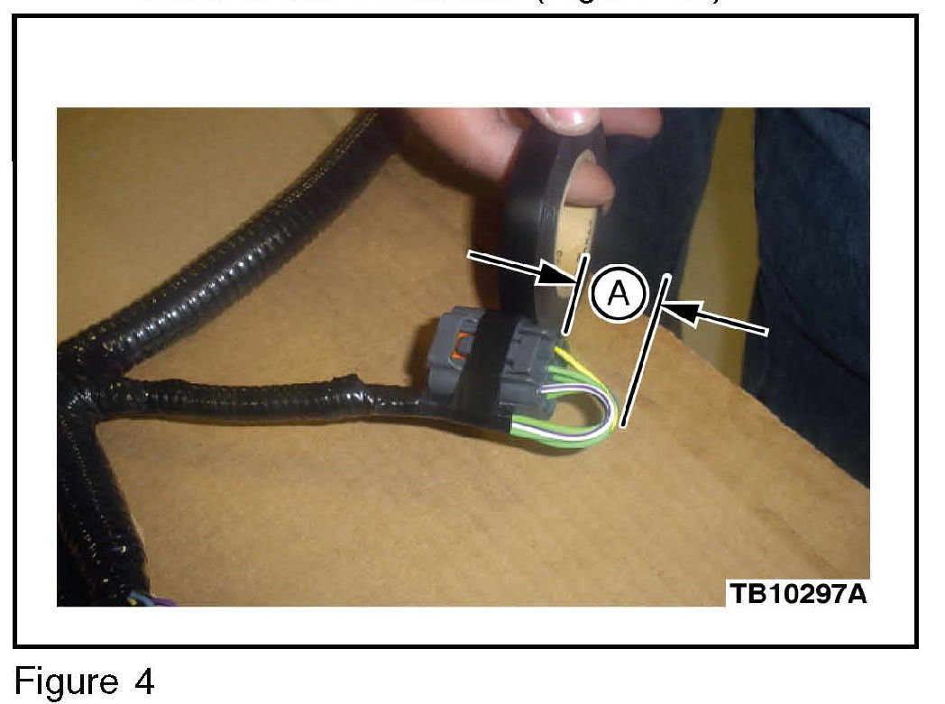 i. Use the half-width electrical tape and tape the harness to the connector. (Figure 4A)