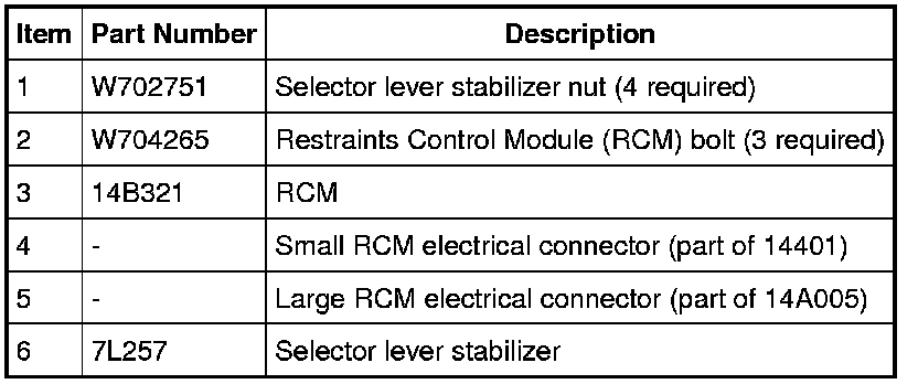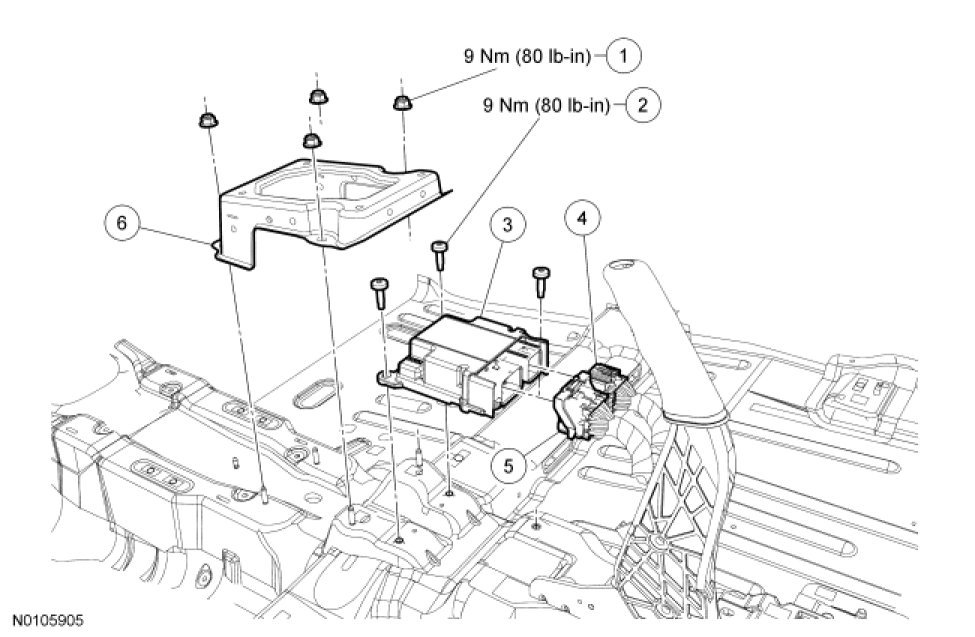 1. WARNING: Always tighten the fasteners of the restraints control module (RCM) and impact sensor (if equipped) to the specified torque. Failure to do so may result in incorrect restraint system operation, which increases the risk of personal injury or death in a crash.