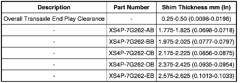 Direct Clutch Hub Shim Selection Chart