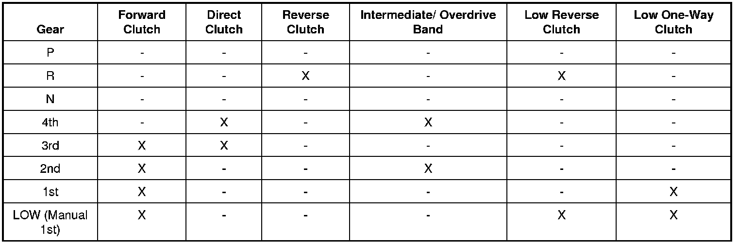 Reference: Band/Clutch Application Chart