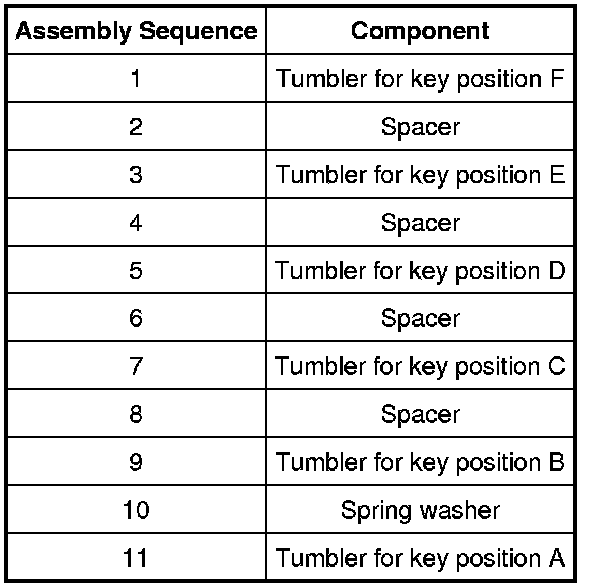 NOTE: This lock cylinder cannot be disassembled. This procedure is for assembly only.