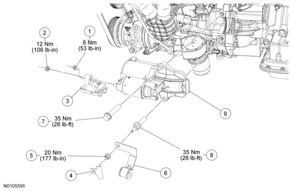 - Tighten the upper bolt to 35 Nm (26 lb-ft).