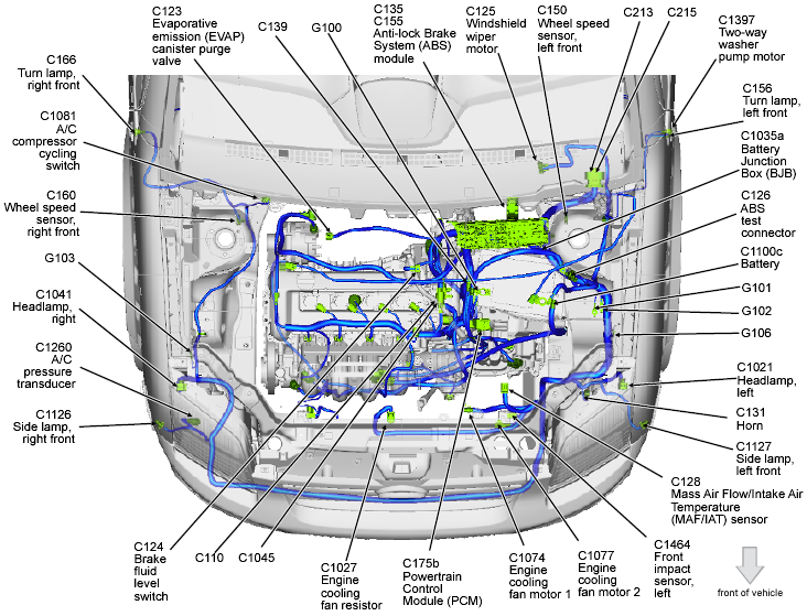 | Anti-Lock Brake System (ABS) Module | Left rear of engine compartment. See Figure. |