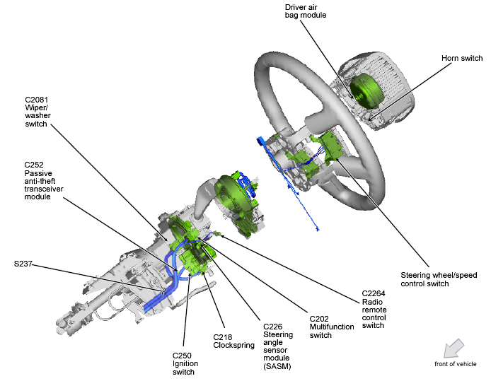 | Steering Angle Sensor Module (SASM) | Steering column. See Figure. |