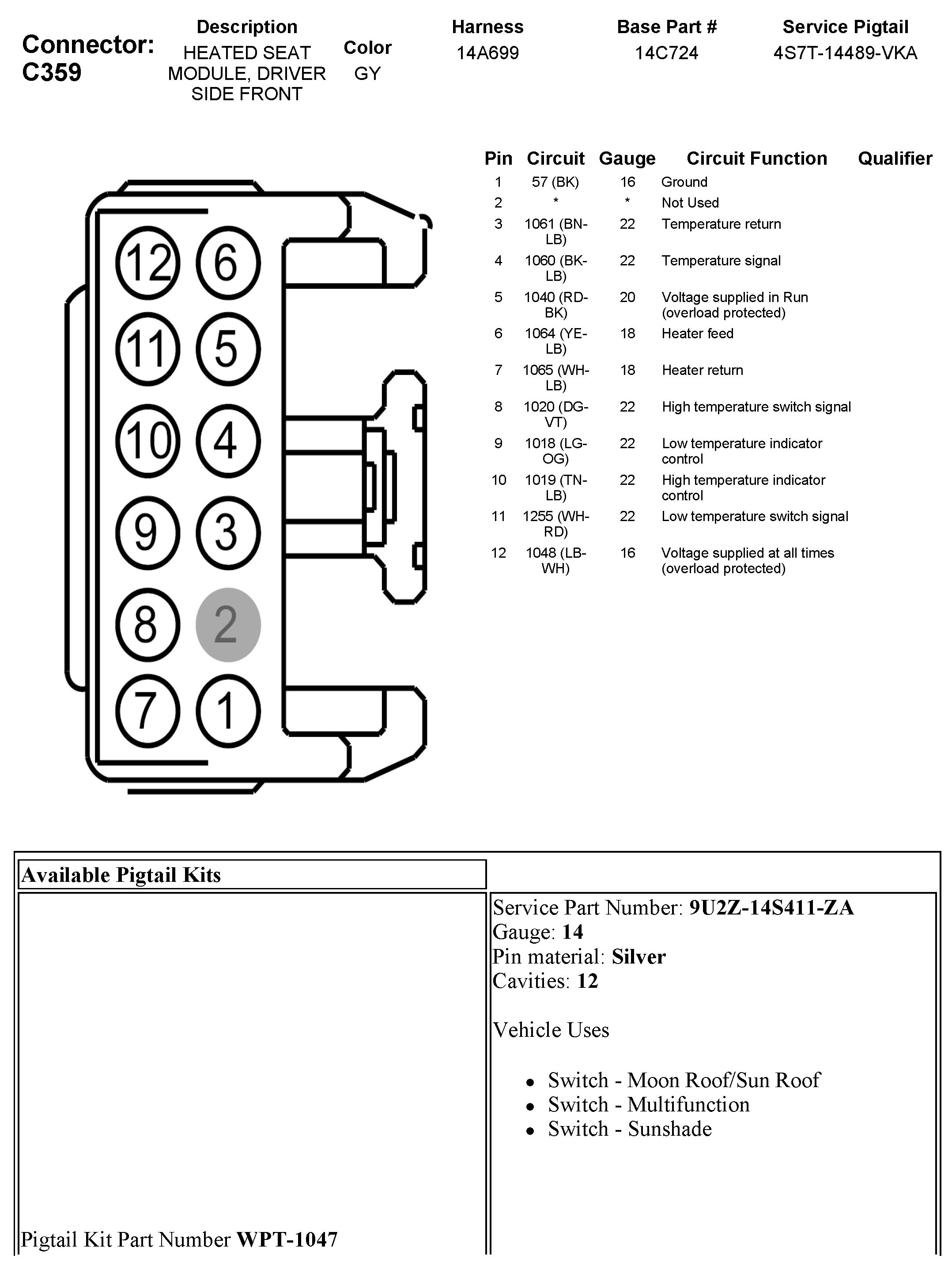 C359 Heated Seat Module, Driver Side Front