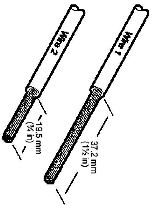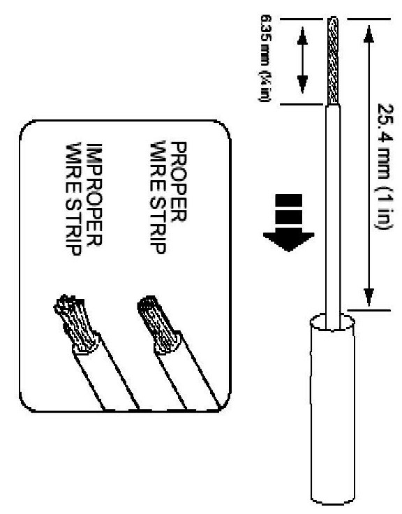 2. Strip 6.35mm (1/4 in) of insulation from each wire end, taking care not to nick or cut wire strands.