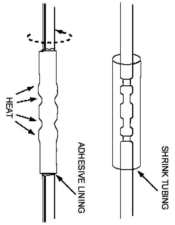 8. Use shielded heat gun to heat the repaired area until adhesive flows Out of both ends of heat shrink tubing.