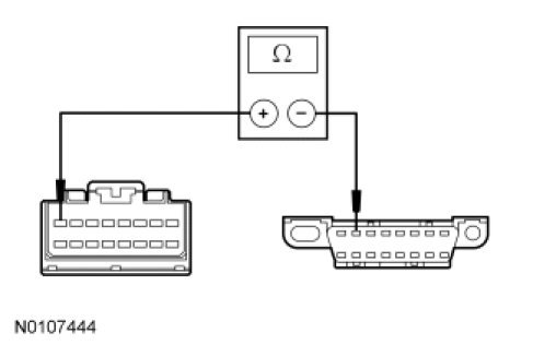 - Measure the resistance between the LCM C2145a-16, circuit 915 (PK/LB), harness side and the DLC C251-10, circuit 915 (PK/LB), harness side.