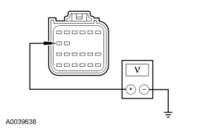 - Measure the voltage between the RCM C310a-12, circuit 937 (RD/WH), harness side and ground.
