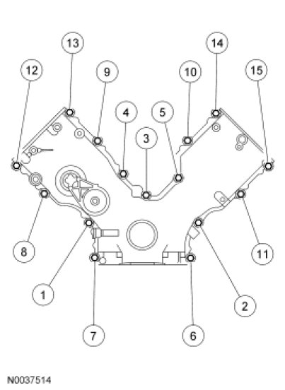 Tighten the front cover fasteners in the sequence shown to