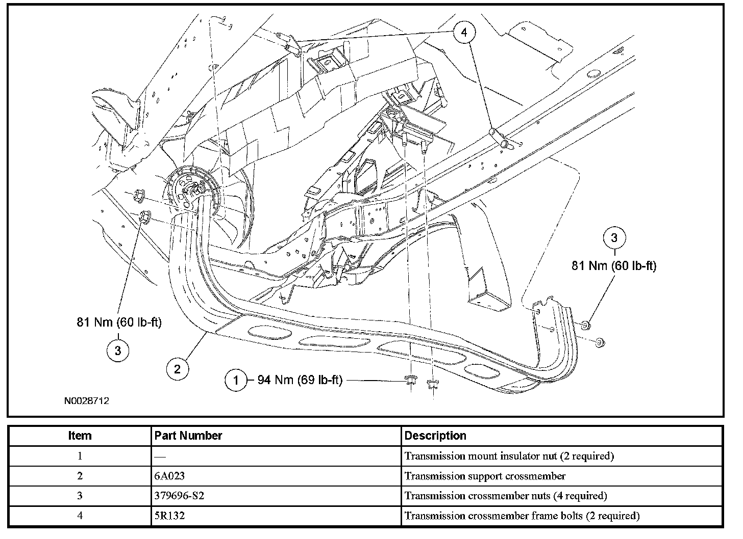1. For additional information on the transmission support crossmember, refer to Transmission Support Crossmember.