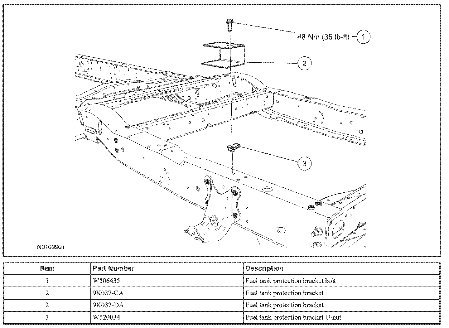 3. For information on the fuel tank protection brackets, refer to Fuel Tank Protection Bracket.