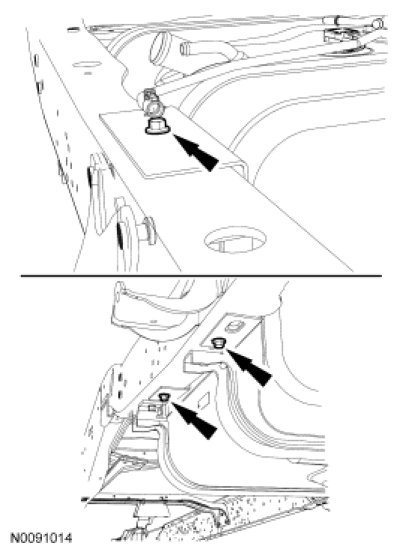 1. With the vehicle in NEUTRAL, position it on a hoist. For additional information, refer to Jacking and Lifting Service and Repair.