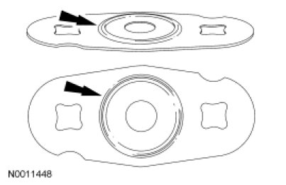 - Install a new EGR system module gasket with the side with the raised ring facing the intake manifold.