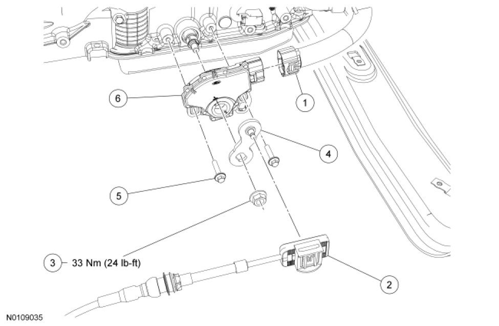 - Tighten to 33 Nm (24 lb-ft).
