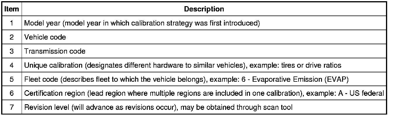 Powertrain calibration information is printed in the lower right corner of the VC label. Only the base calibration information is printed. Revision levels will not appear, however, they can be obtained through a scan tool using the most current software revision.