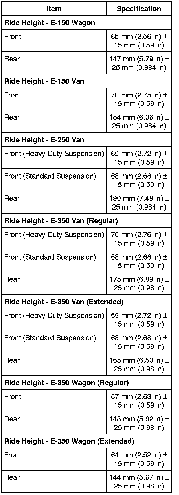 Home >> Ford >> 2011 >> E 150 V8-5.4L >> Repair and Diagnosis >> Maintenance >> Alignment >> Specifications >> Suspension System - General Information