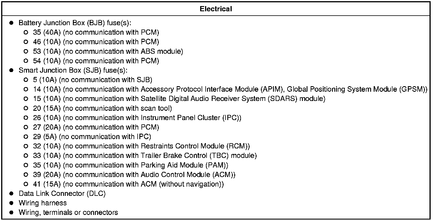 Home >> Ford >> 2011 >> E 150 V8-5.4L >> Repair and Diagnosis >> Powertrain Management >> Computers and Control Systems >> Information Bus >> Testing and Inspection >> Initial Inspection and Diagnostic Overview >> Module Communications Network >> Inspection and Verification