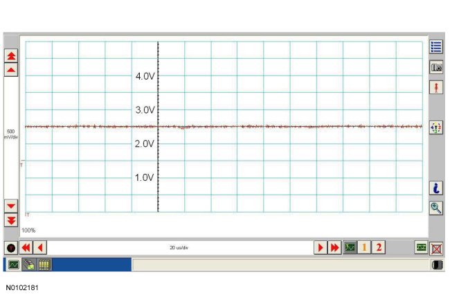 Traces below are viewed at 500mV per division (vertical axis) and 20 microseconds (20�s) per division (horizontal axis). Readings taken with a different oscilloscope vary from those shown. Compare any suspect readings to a known good vehicle.